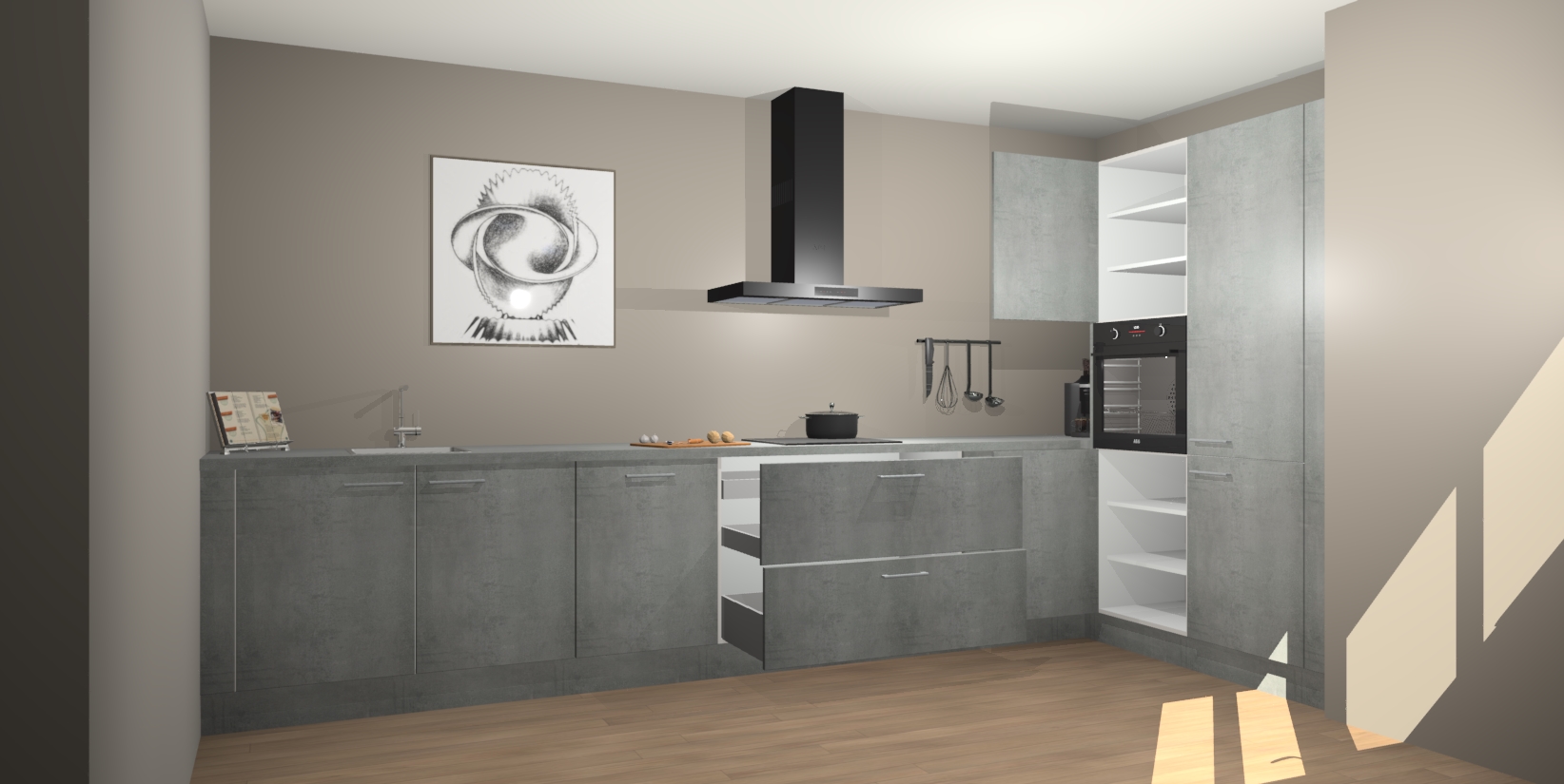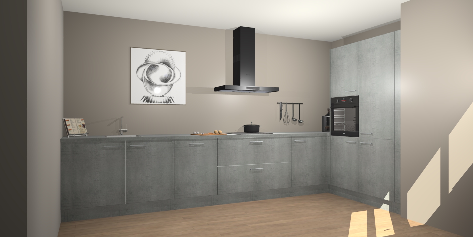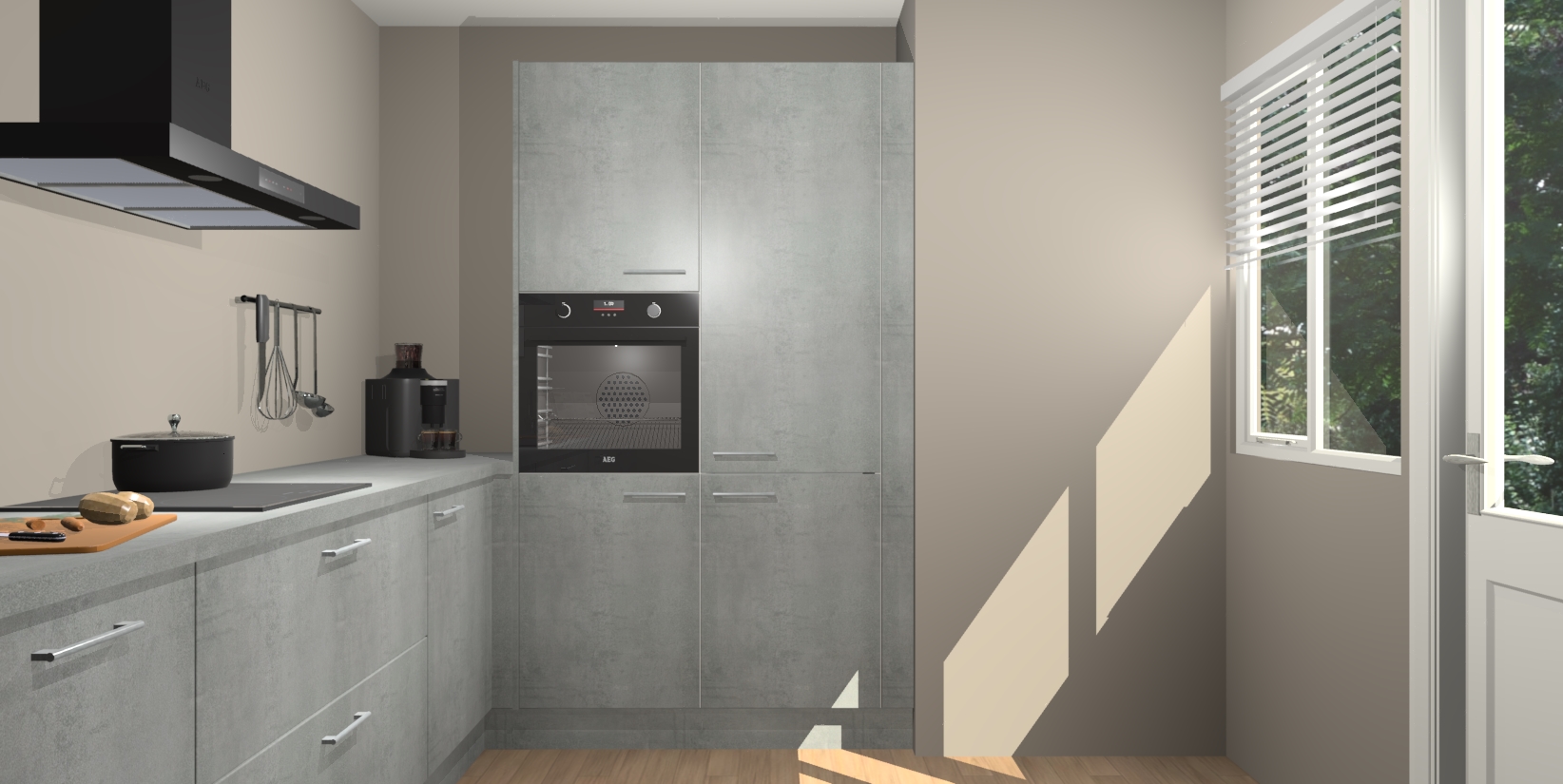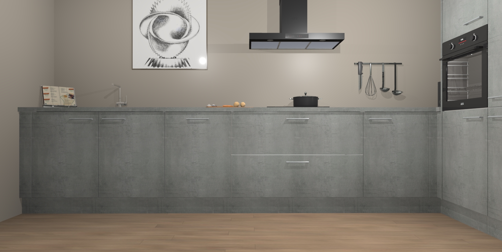 Welkom bij de Beton Paregrijs keuken Khao Lak. Deze prachtige keuken zal de komende jaren het middelpunt van de belangstelling in uw huis zijn. Uitgerust met vijf inbouwapparaten komt u nooit kookgereedschap tekort. Bovendien geeft de warme houtlook elke ruimte een uitnodigende en tijdloze uitstraling.