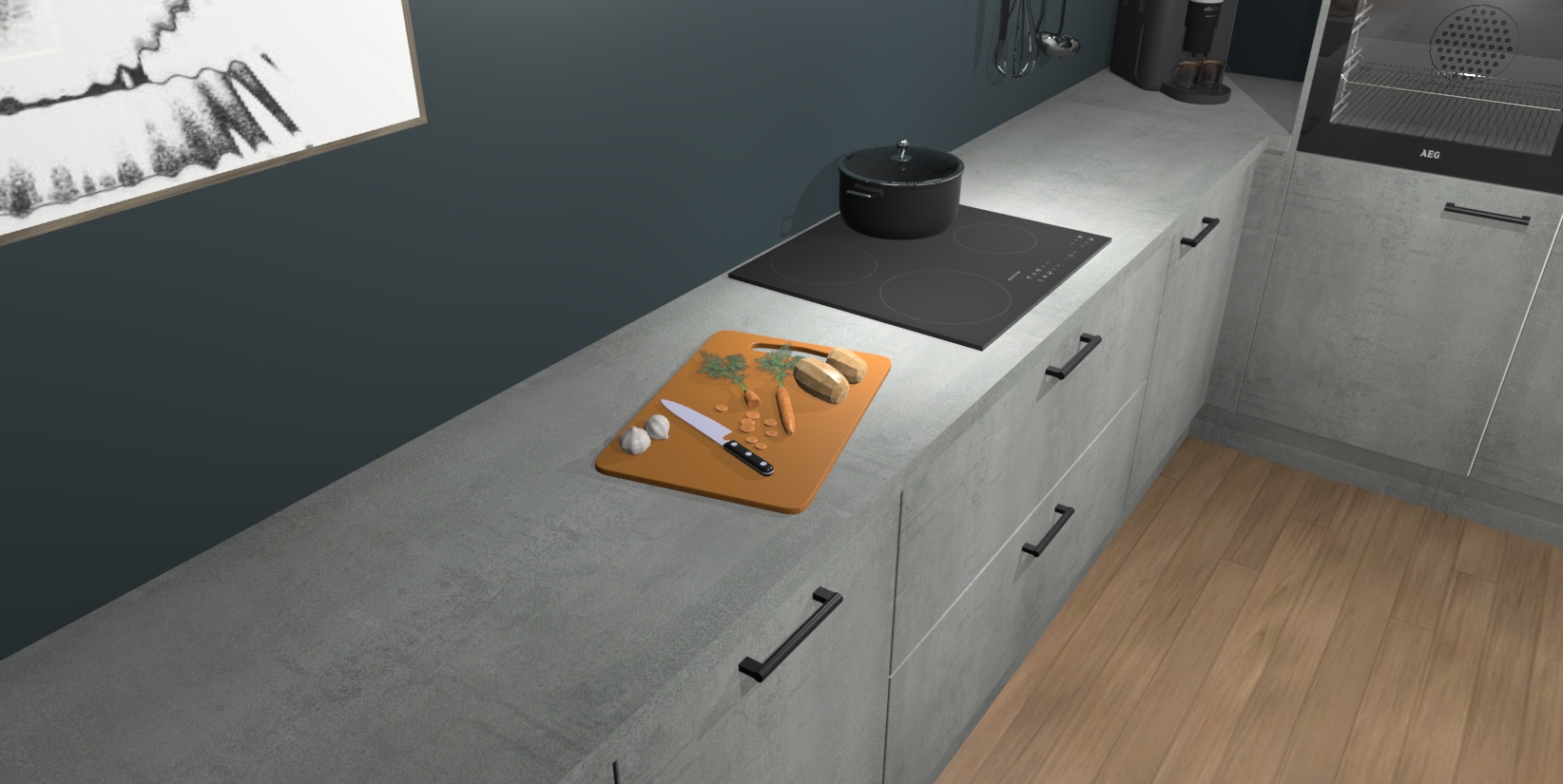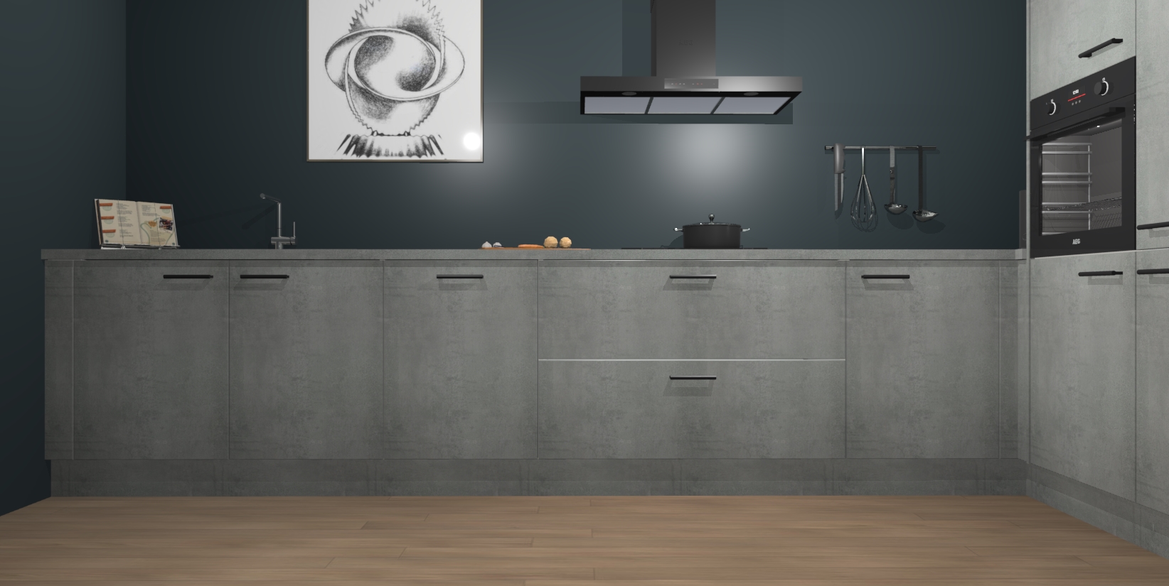 Welkom bij de Beton Paregrijs keuken Khao Lak. Deze prachtige keuken zal de komende jaren het middelpunt van de belangstelling in uw huis zijn. Uitgerust met vijf inbouwapparaten komt u nooit kookgereedschap tekort. Bovendien geeft de warme houtlook elke ruimte een uitnodigende en tijdloze uitstraling.