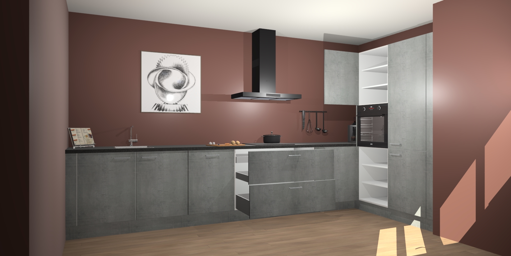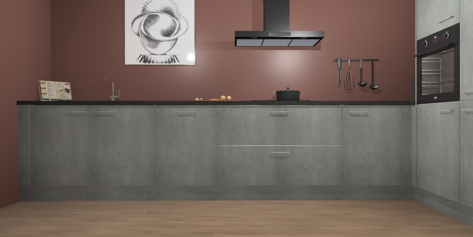 Welkom bij de Beton Paregrijs keuken Khao Lak. Deze prachtige keuken zal de komende jaren het middelpunt van de belangstelling in uw huis zijn. Uitgerust met vijf inbouwapparaten komt u nooit kookgereedschap tekort. Bovendien geeft de warme houtlook elke ruimte een uitnodigende en tijdloze uitstraling.
