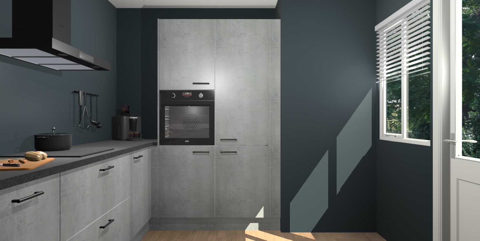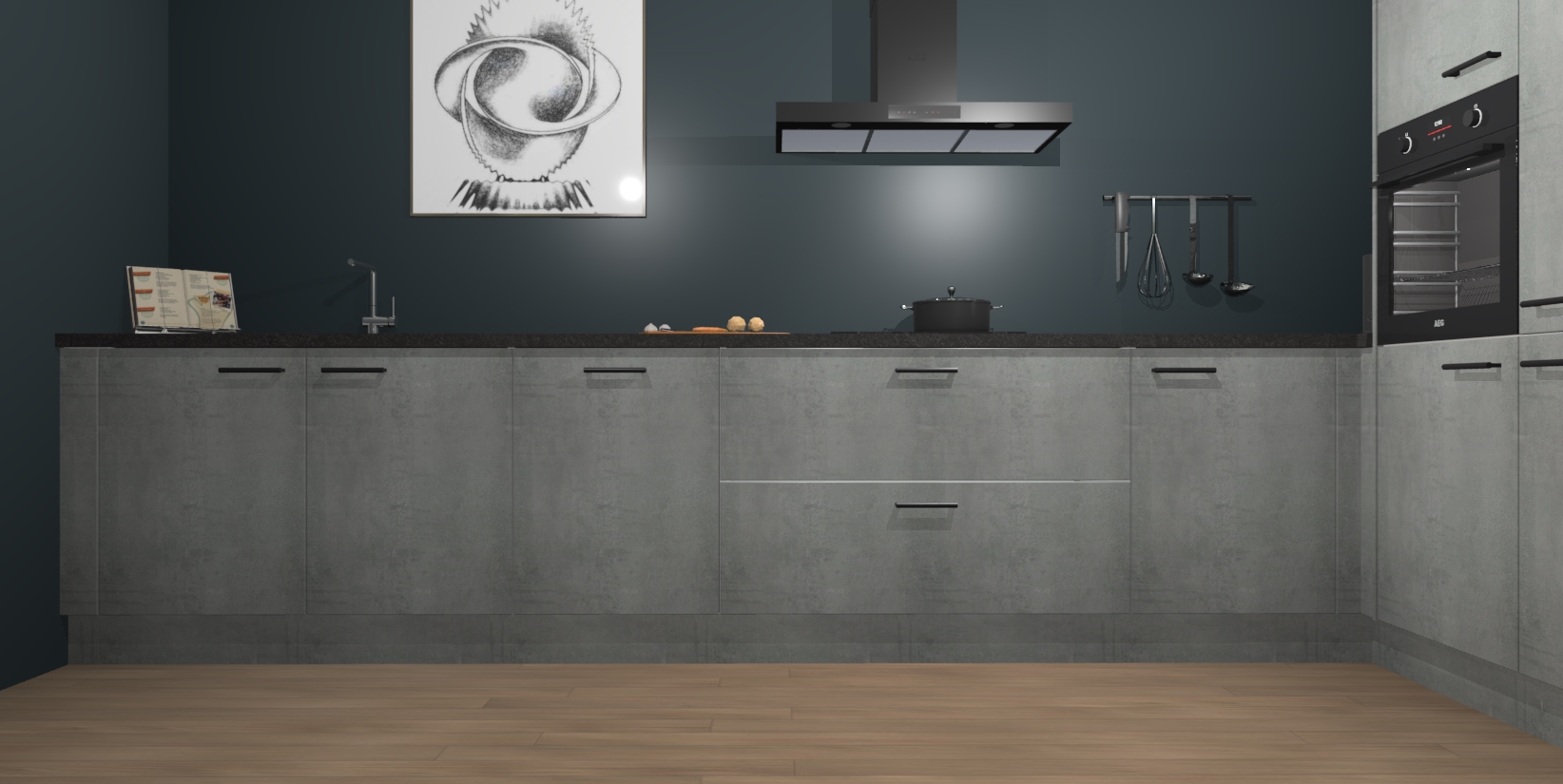 Welkom bij de Beton Paregrijs keuken Khao Lak. Deze prachtige keuken zal de komende jaren het middelpunt van de belangstelling in uw huis zijn. Uitgerust met vijf inbouwapparaten komt u nooit kookgereedschap tekort. Bovendien geeft de warme houtlook elke ruimte een uitnodigende en tijdloze uitstraling.