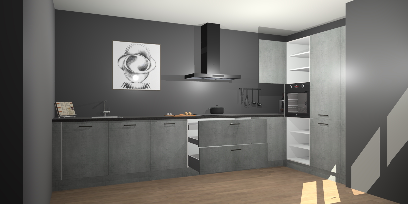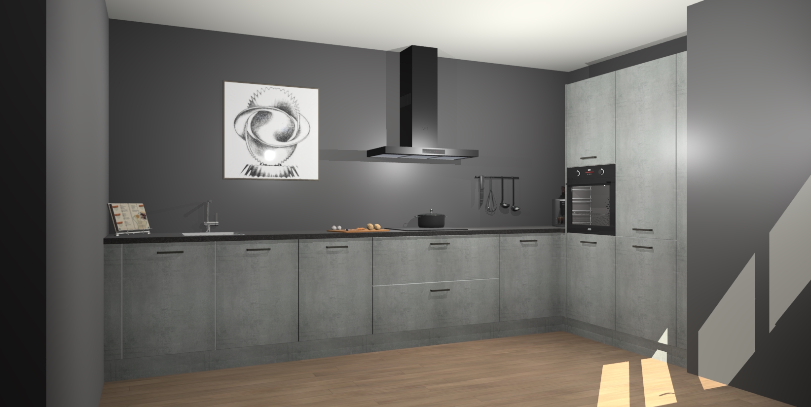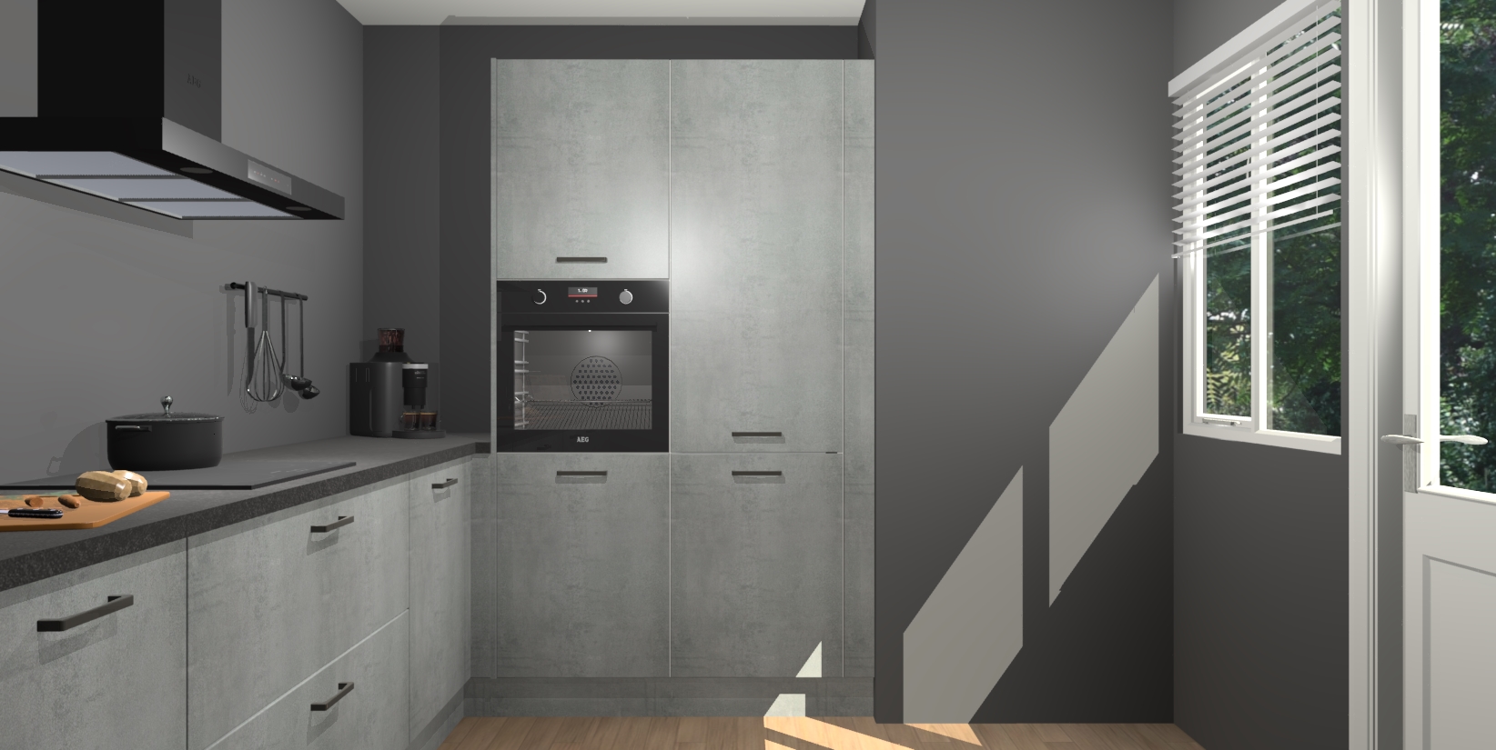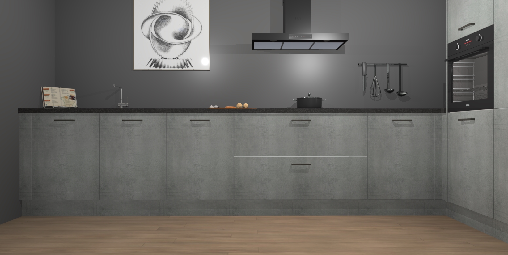 Welkom bij de Beton Paregrijs keuken Khao Lak. Deze prachtige keuken zal de komende jaren het middelpunt van de belangstelling in uw huis zijn. Uitgerust met vijf inbouwapparaten komt u nooit kookgereedschap tekort. Bovendien geeft de warme houtlook elke ruimte een uitnodigende en tijdloze uitstraling.