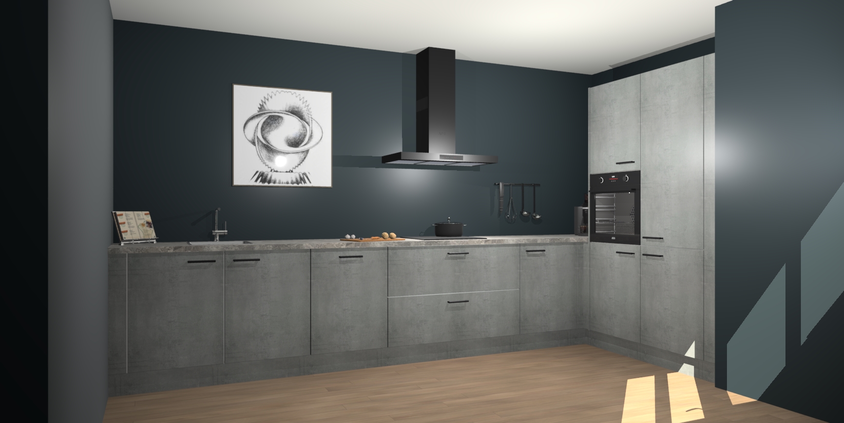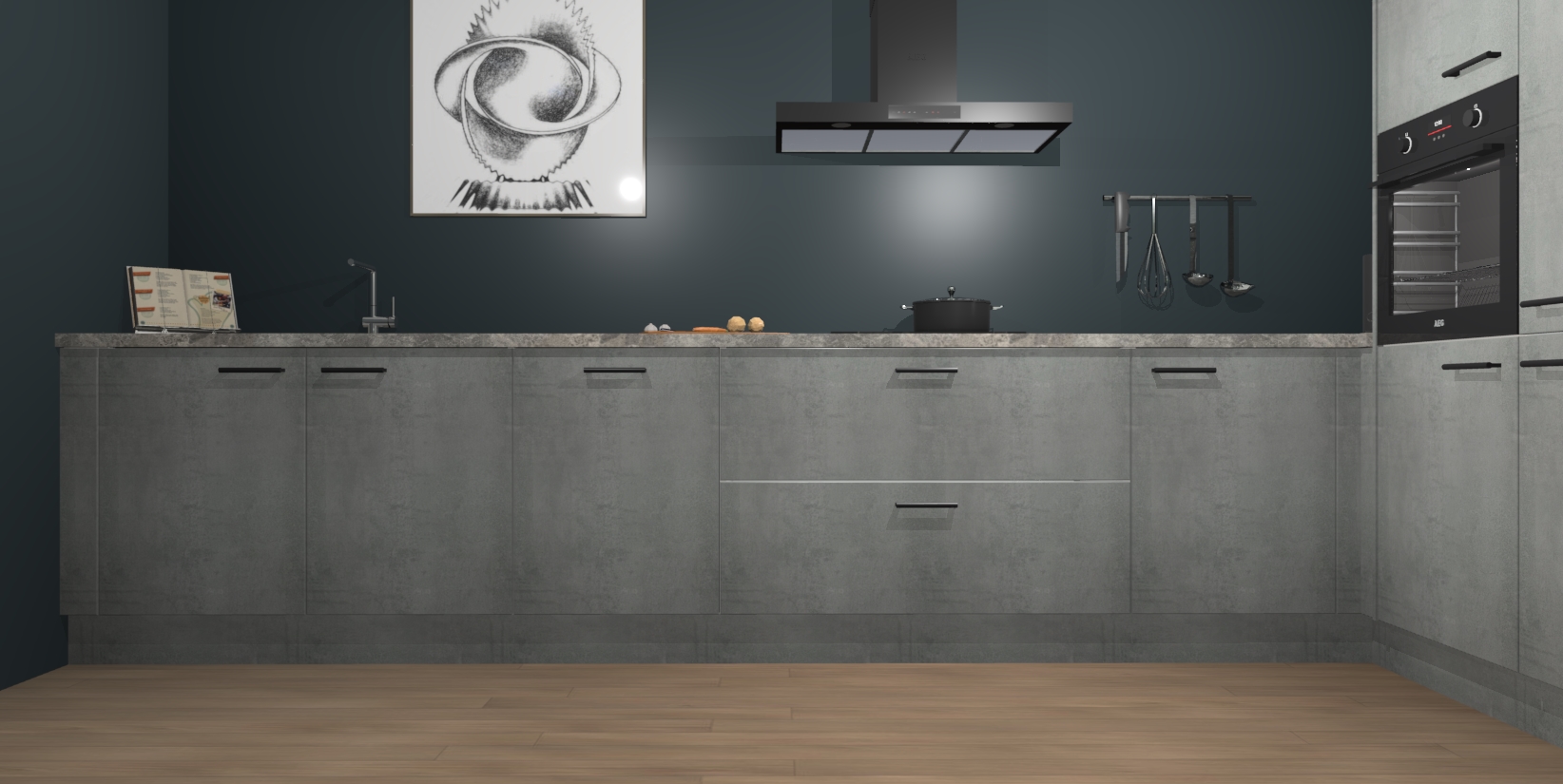 Welkom bij de Beton Paregrijs keuken Khao Lak. Deze prachtige keuken zal de komende jaren het middelpunt van de belangstelling in uw huis zijn. Uitgerust met vijf inbouwapparaten komt u nooit kookgereedschap tekort. Bovendien geeft de warme houtlook elke ruimte een uitnodigende en tijdloze uitstraling.