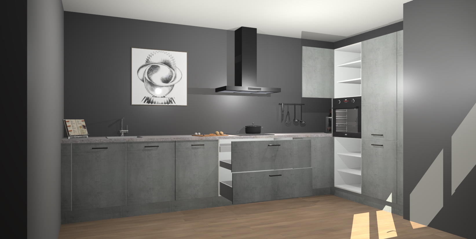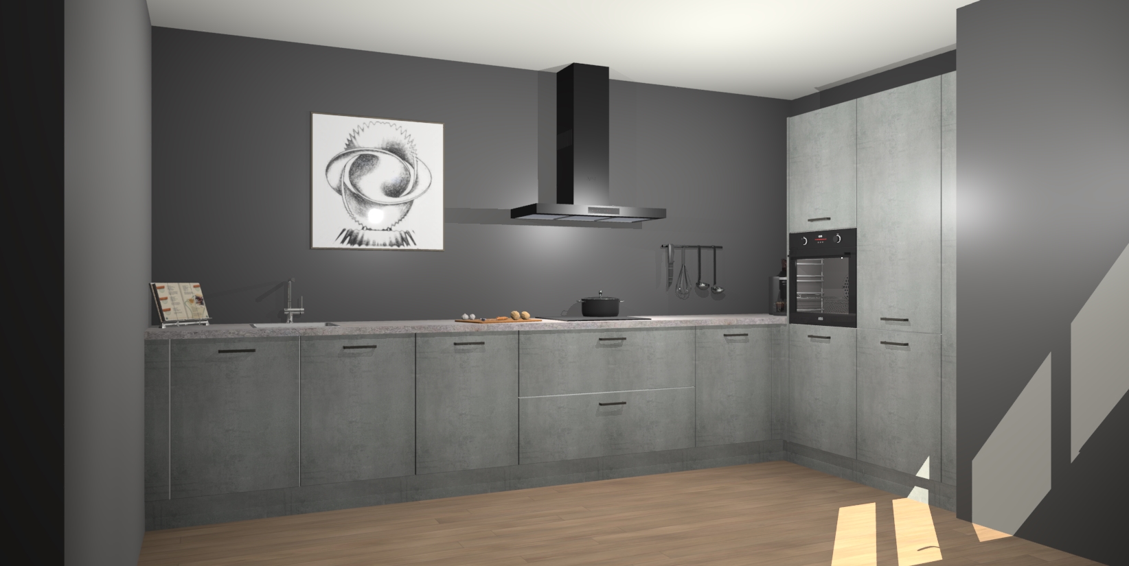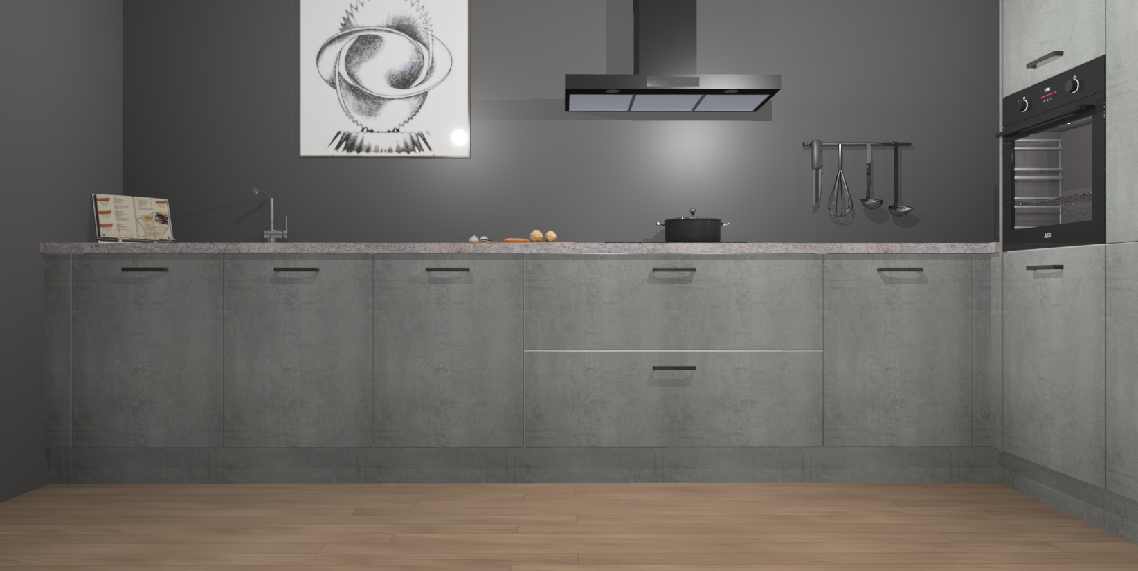 Welkom bij de Beton Paregrijs keuken Khao Lak. Deze prachtige keuken zal de komende jaren het middelpunt van de belangstelling in uw huis zijn. Uitgerust met vijf inbouwapparaten komt u nooit kookgereedschap tekort. Bovendien geeft de warme houtlook elke ruimte een uitnodigende en tijdloze uitstraling.