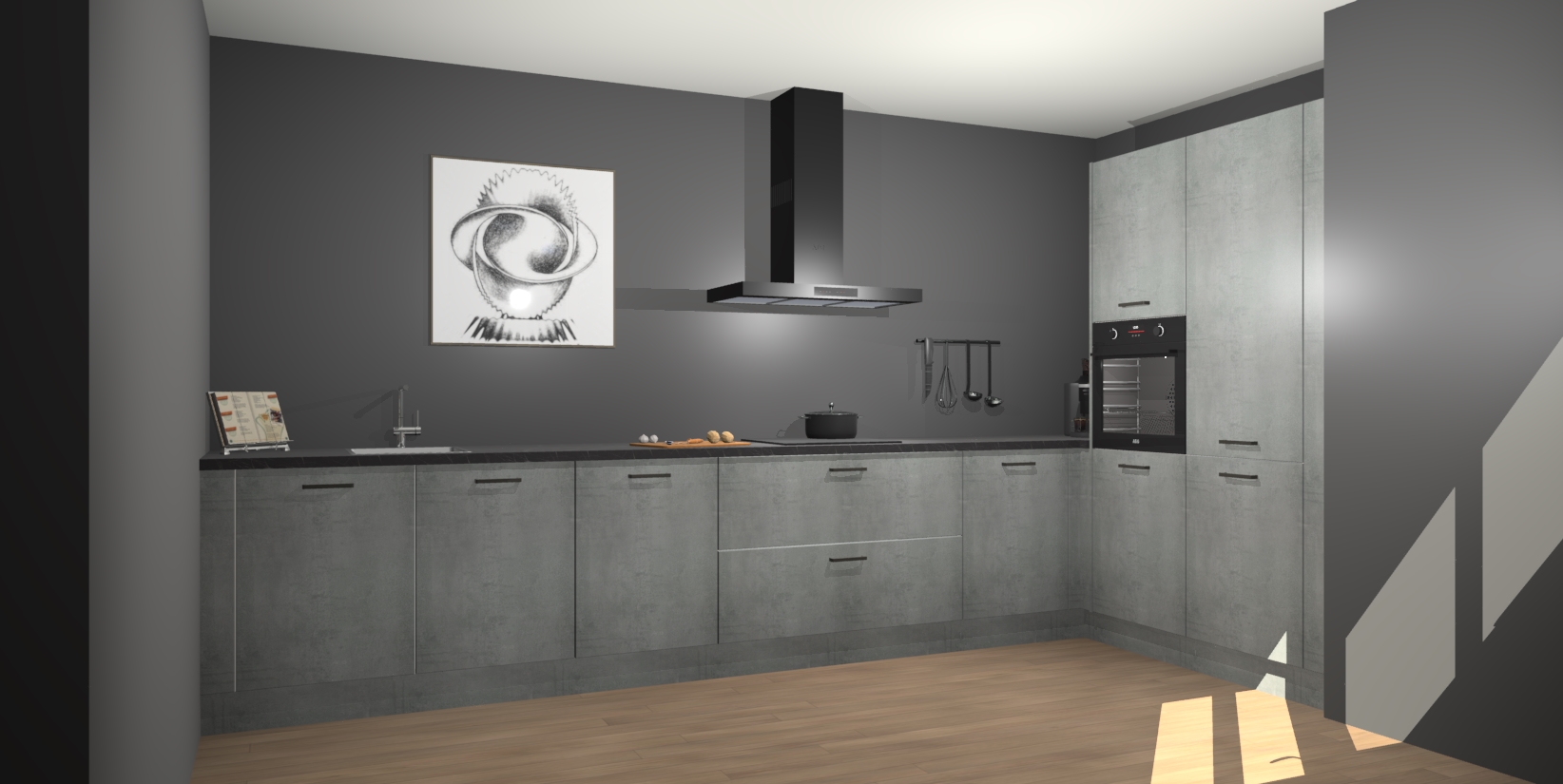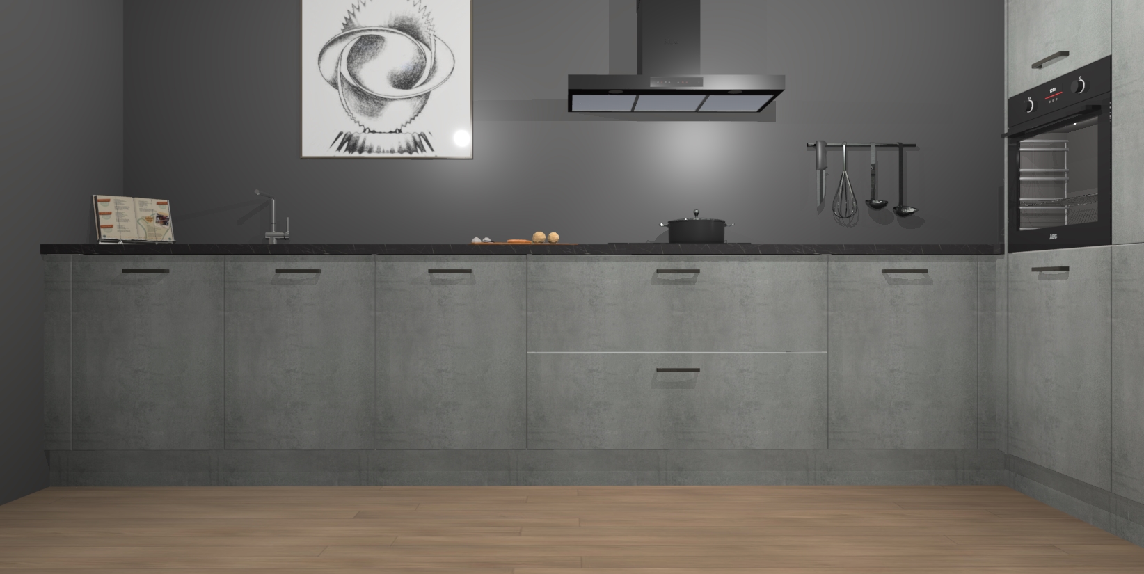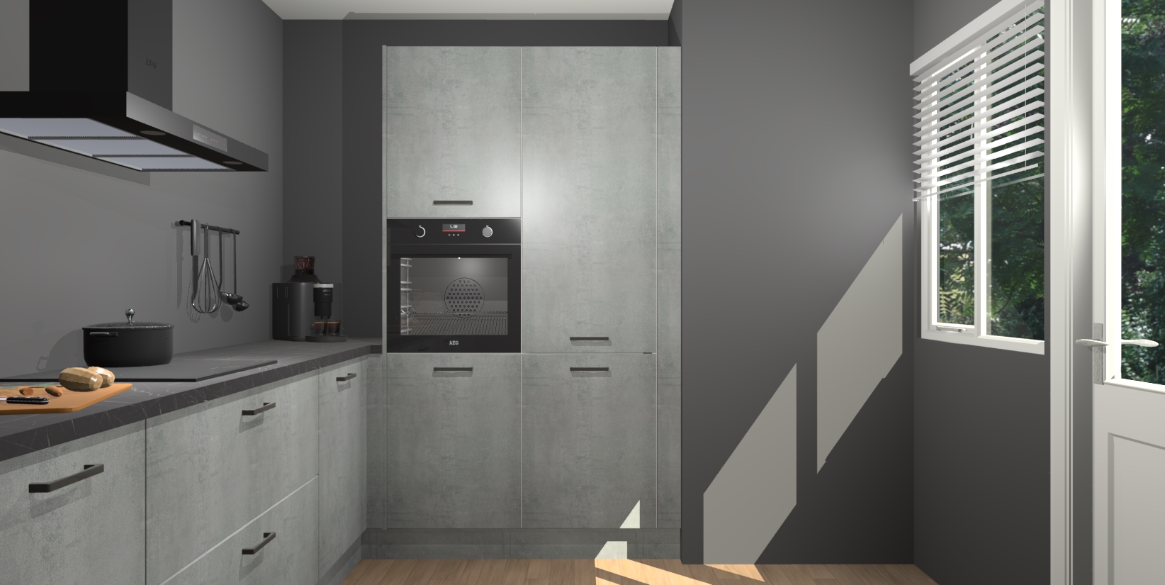 Welkom bij de Beton Paregrijs keuken Khao Lak. Deze prachtige keuken zal de komende jaren het middelpunt van de belangstelling in uw huis zijn. Uitgerust met vijf inbouwapparaten komt u nooit kookgereedschap tekort. Bovendien geeft de warme houtlook elke ruimte een uitnodigende en tijdloze uitstraling.