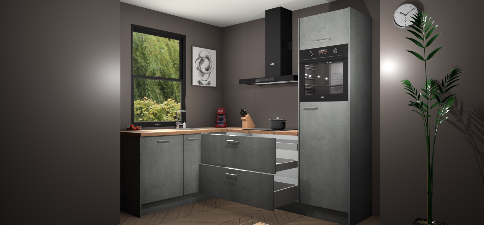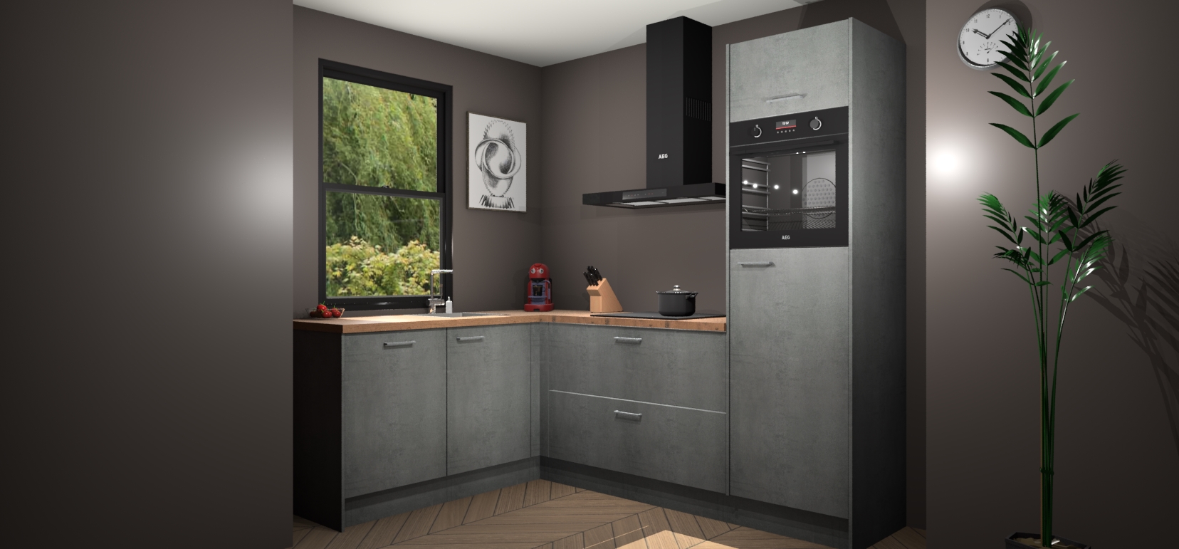 Deze prachtige hoekkeuken heeft alle benodigdheden om uw droomkook- en eetruimte compleet te maken. De Beton Parelgrijs kasten bieden een echo van raffinement, terwijl de 5 inbouwapparaten genoeg opties bieden voor het bereiden van heerlijke maaltijden. De oven, inductiekookplaat, afzuigkap, vaatwasser en koelkast zorgen ervoor dat u tijd in de keuken zo efficiënt mogelijk verloopt, terwijl ze ook dat extra vleugje luxe bieden.