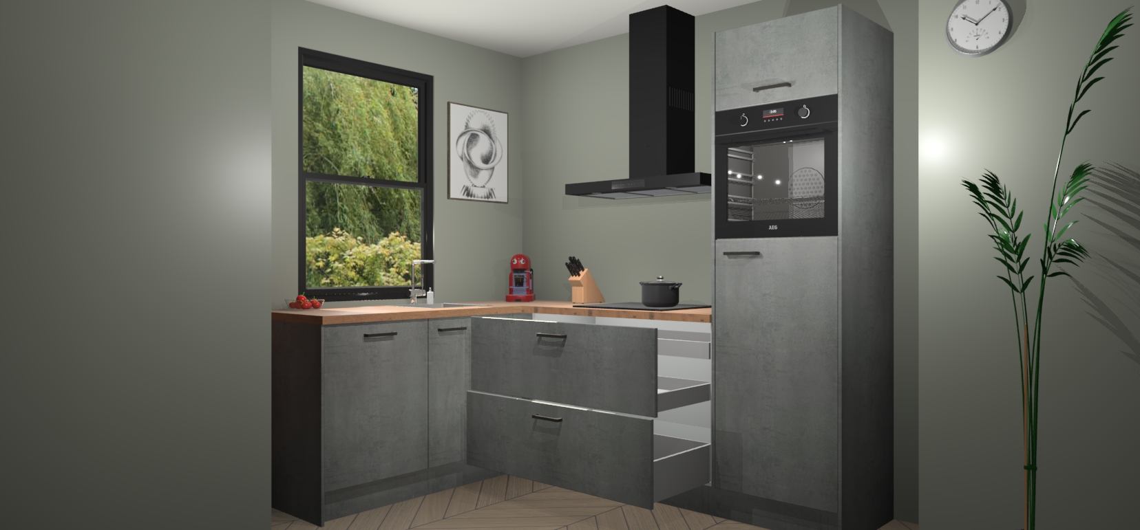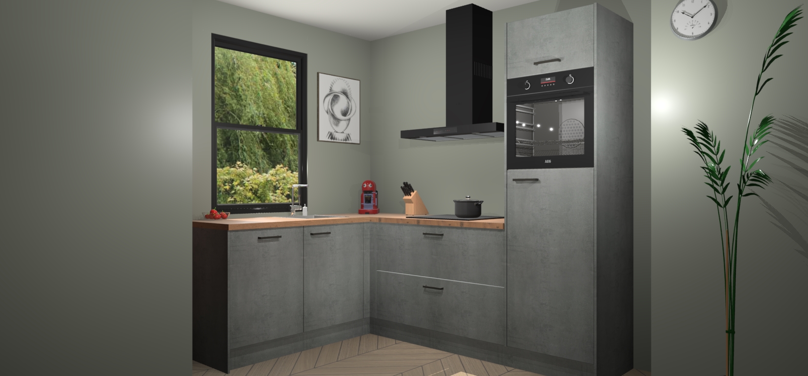 Deze prachtige hoekkeuken heeft alle benodigdheden om uw droomkook- en eetruimte compleet te maken. De Beton Parelgrijs kasten bieden een echo van raffinement, terwijl de 5 inbouwapparaten genoeg opties bieden voor het bereiden van heerlijke maaltijden. De oven, inductiekookplaat, afzuigkap, vaatwasser en koelkast zorgen ervoor dat u tijd in de keuken zo efficiënt mogelijk verloopt, terwijl ze ook dat extra vleugje luxe bieden.