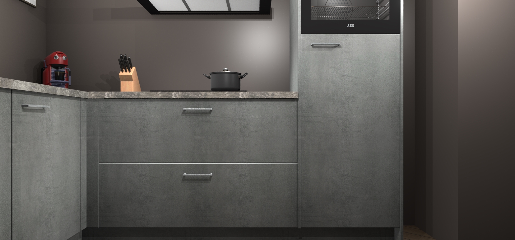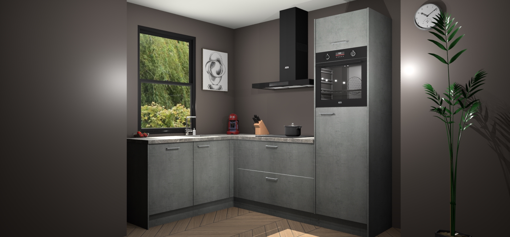 Deze prachtige hoekkeuken heeft alle benodigdheden om uw droomkook- en eetruimte compleet te maken. De Beton Parelgrijs kasten bieden een echo van raffinement, terwijl de 5 inbouwapparaten genoeg opties bieden voor het bereiden van heerlijke maaltijden. De oven, inductiekookplaat, afzuigkap, vaatwasser en koelkast zorgen ervoor dat u tijd in de keuken zo efficiënt mogelijk verloopt, terwijl ze ook dat extra vleugje luxe bieden.