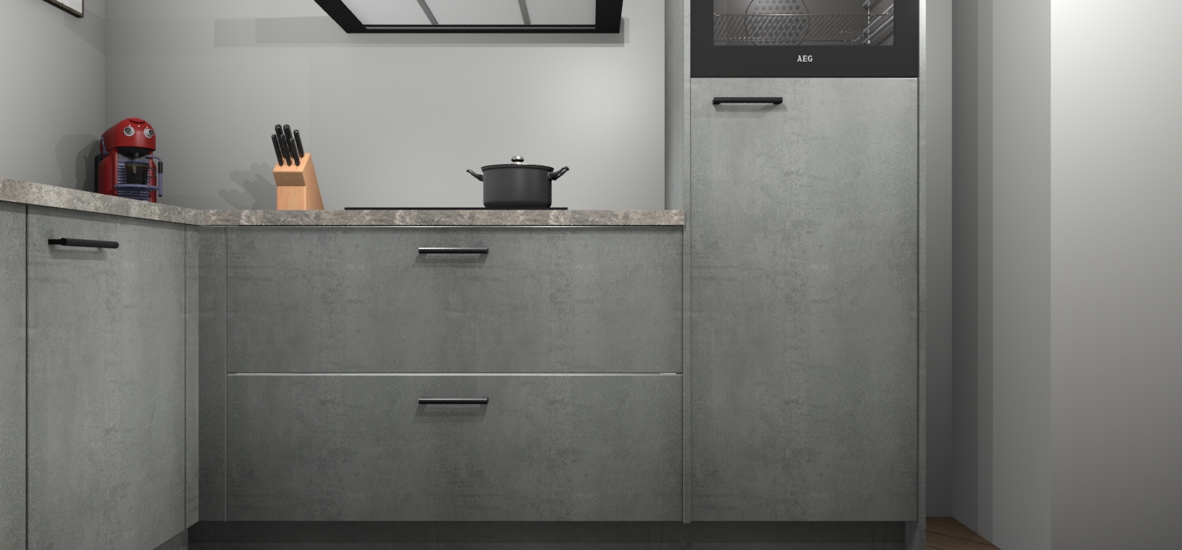 Inclusief plinten, stelpoten en werkblad