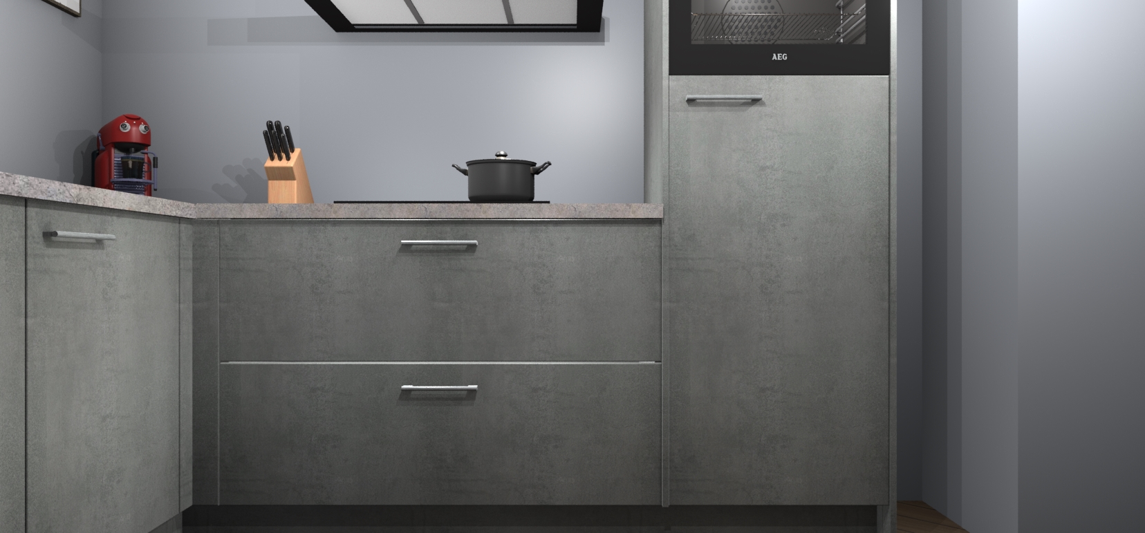 Inclusief plinten, stelpoten en werkblad