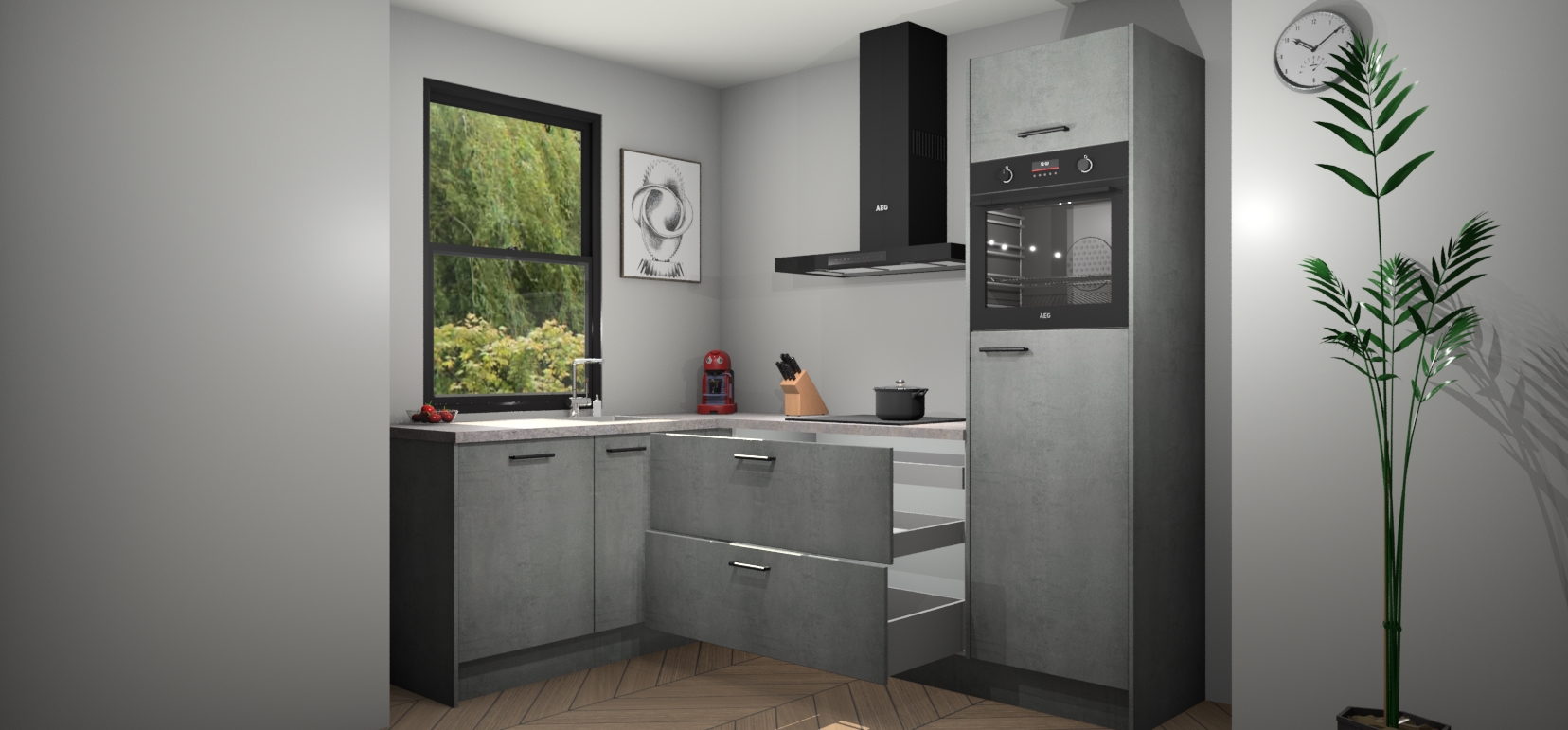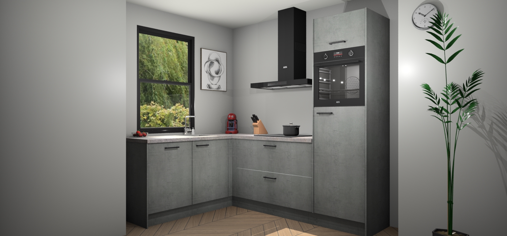Deze prachtige hoekkeuken heeft alle benodigdheden om uw droomkook- en eetruimte compleet te maken. De Beton Parelgrijs kasten bieden een echo van raffinement, terwijl de 5 inbouwapparaten genoeg opties bieden voor het bereiden van heerlijke maaltijden. De oven, inductiekookplaat, afzuigkap, vaatwasser en koelkast zorgen ervoor dat u tijd in de keuken zo efficiënt mogelijk verloopt, terwijl ze ook dat extra vleugje luxe bieden.