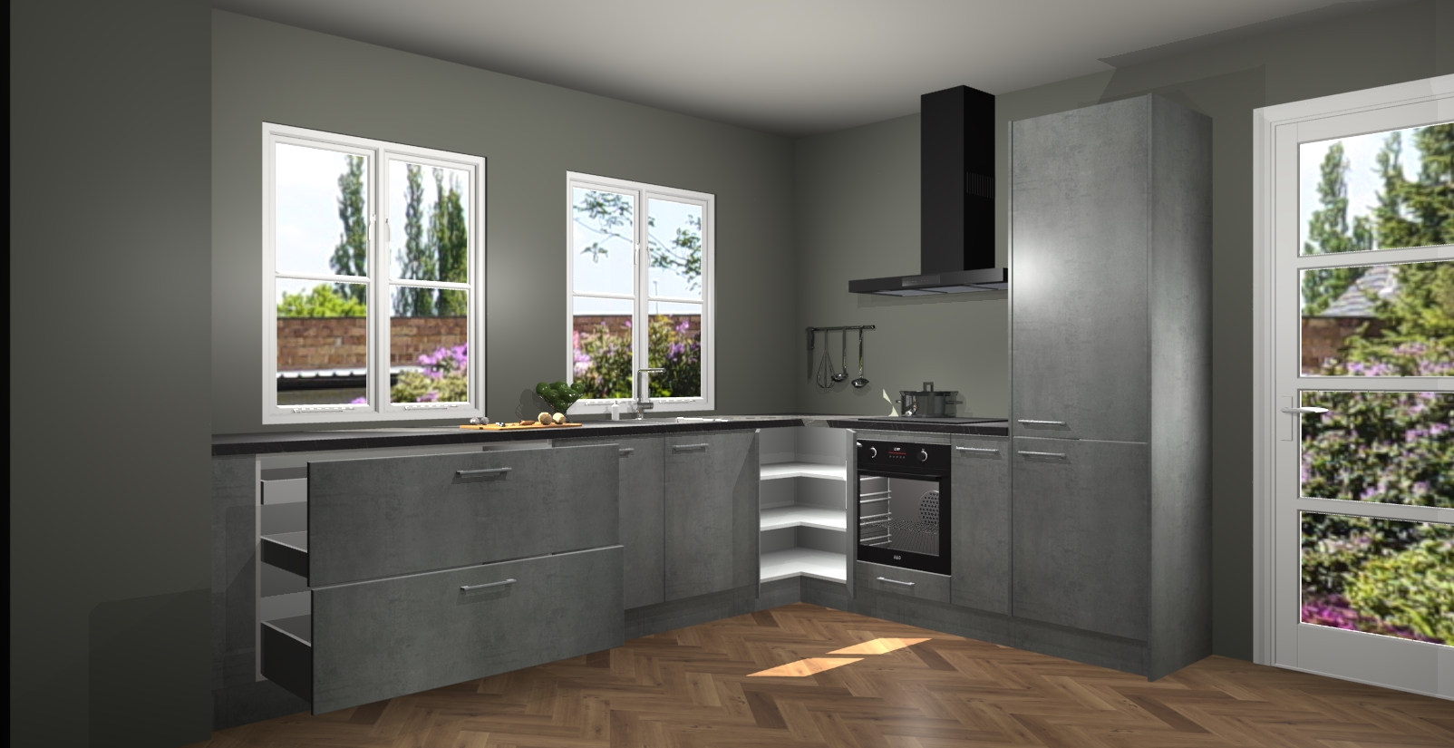 En dat is nog niet alles! U kunt bij uw bestelling ook uw keuken makkelijk upgraden naar AEG apparatuur. Alles wat u nodig heeft om te koken - meteen vanaf het begin! Met zo'n uitstekend pakket is het geen verrassing dat de Beton Parelgrijs keuken Konin een van onze populairste producten is!