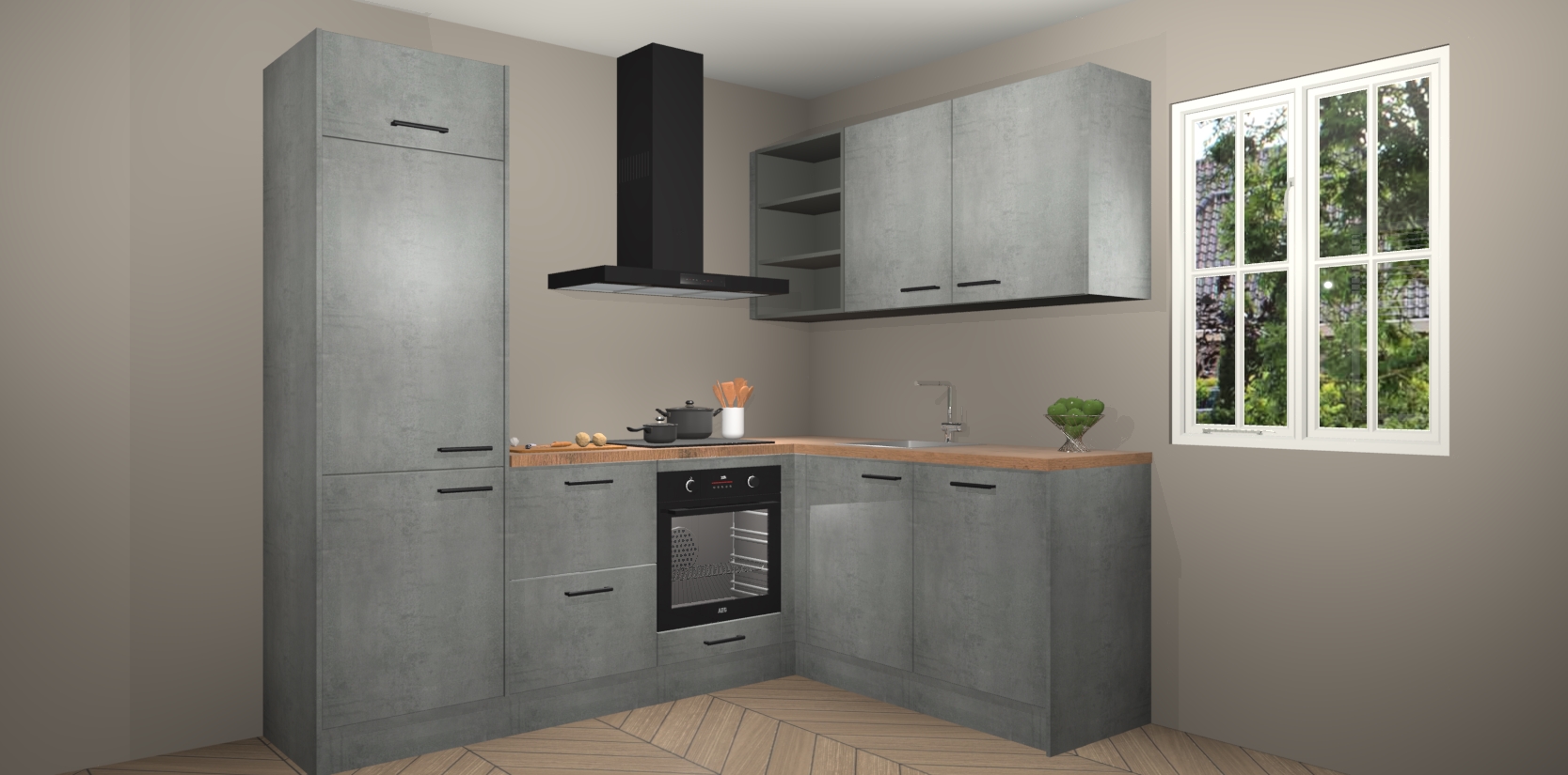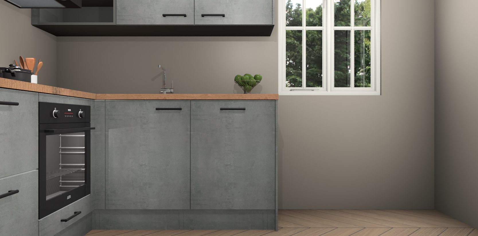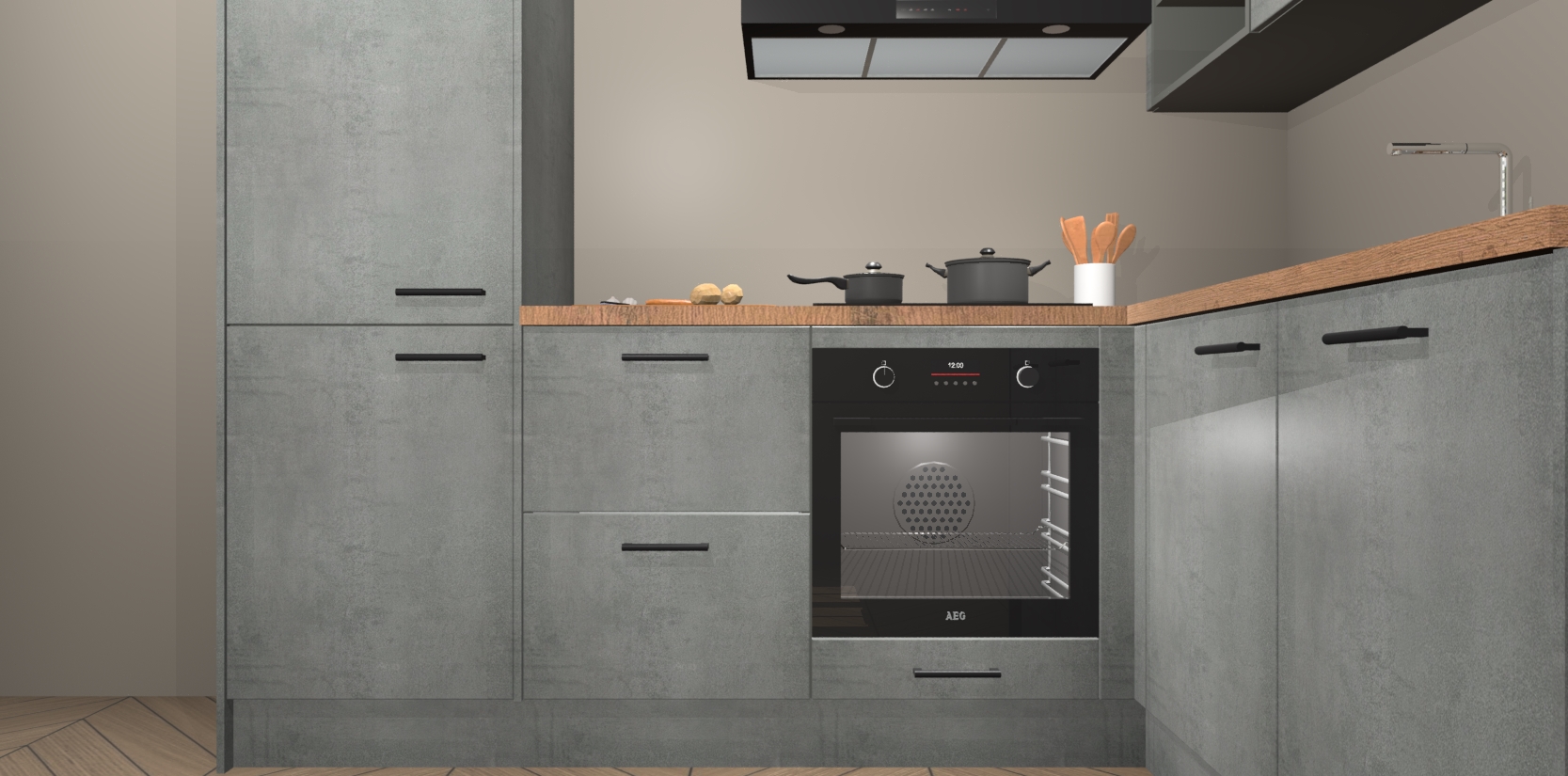 Dit model biedt u voldoende opbergruimte en vijf ingebouwde apparaten: een oven, inductiekookplaat, afzuigkap, vaatwasser en koelkast. Deze apparaten kunnen gemakkelijk worden geüpgrade naar AEG nadat u besteld heeft. De verschillende laden en kastjes bevatten softclose-deuren waardoor ze gezellig dichtvallen met een geruststellend helemaal geruisloos geluid. En dat is nog niet alles! We garanderen ook dat de prijs altijd laag blijft - dus haal nu uw Beton Parelgrijs keuken Krakau terwijl het kan.
