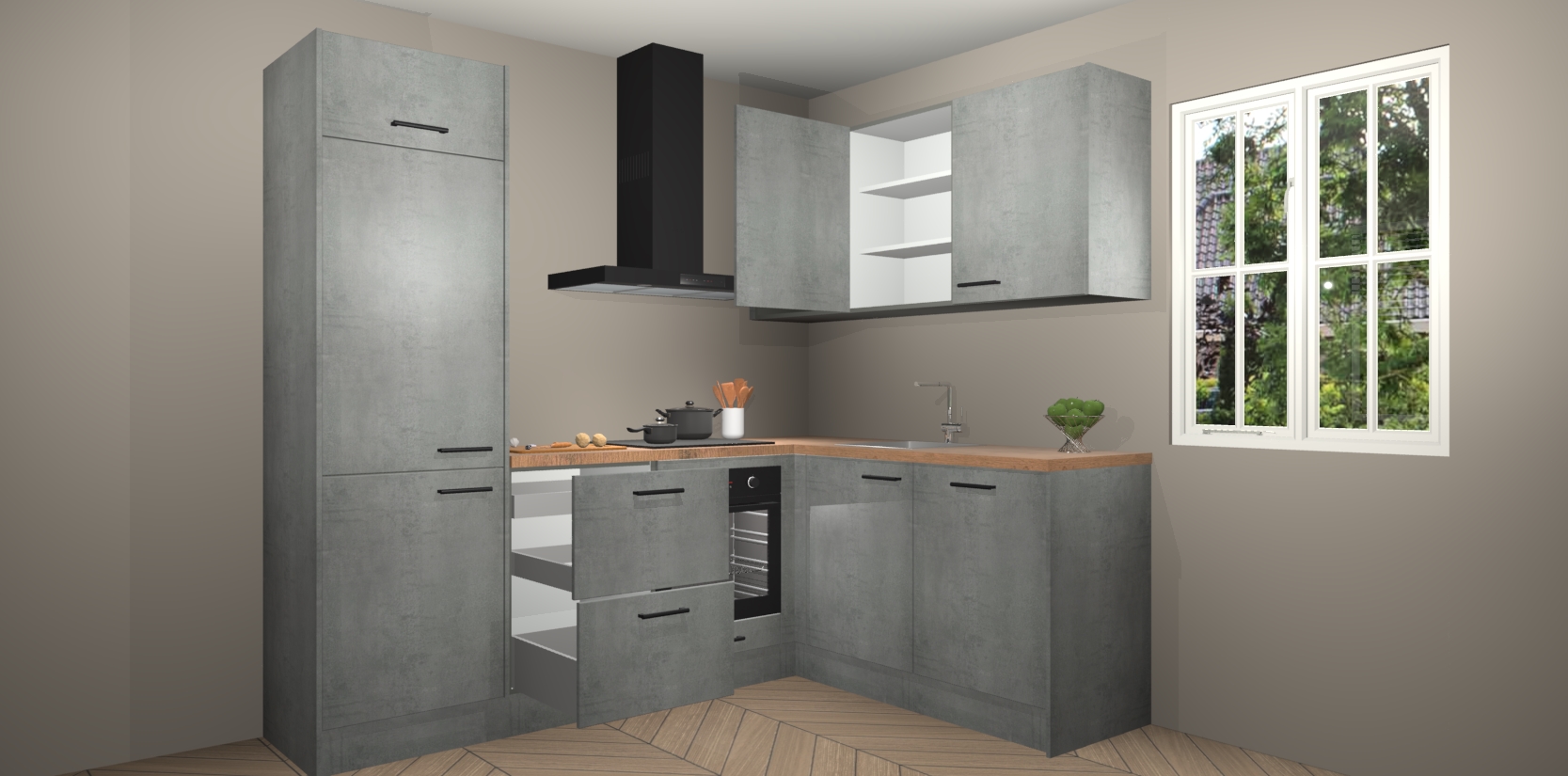Bestellen was nog nooit zo makkelijk en we leveren met slechts 7 weken; zodra de keuken arriveert staan de kasten voor gemonteerd klaar om er alles aan te doen dat u hem gemakkelijk zelf kunt installeren! Eén ding is zeker: met de Beton Parelgrijs keuken Krakau slaagt u erin modischer, modernere keukens uit te rusten die tientallen jaren meegaan! Haal snel uw Beton Parelgrijs keuken Krakau - of u nu net begint of al 'levenservaring' hebt in de keukendroomloopbaan - want dit topmodel van onze collectie wilt u absoluut niet missen.