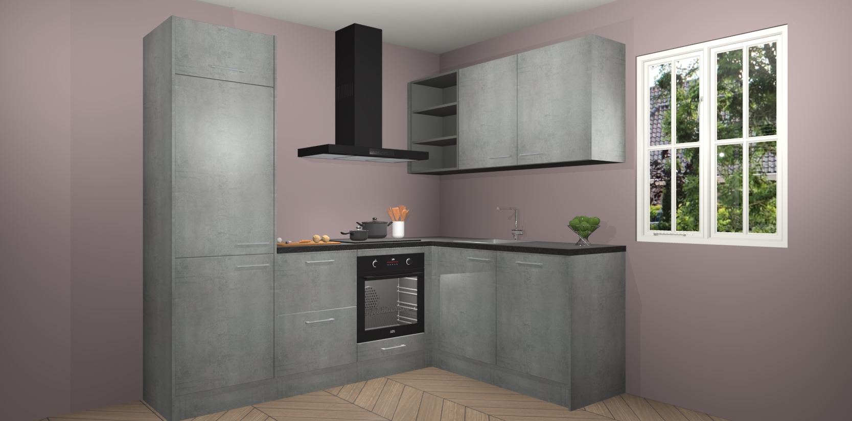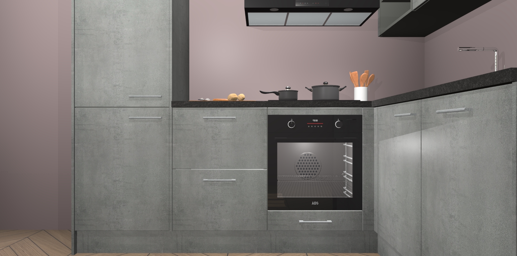 Dit model biedt u voldoende opbergruimte en vijf ingebouwde apparaten: een oven, inductiekookplaat, afzuigkap, vaatwasser en koelkast. Deze apparaten kunnen gemakkelijk worden geüpgrade naar AEG nadat u besteld heeft. De verschillende laden en kastjes bevatten softclose-deuren waardoor ze gezellig dichtvallen met een geruststellend helemaal geruisloos geluid. En dat is nog niet alles! We garanderen ook dat de prijs altijd laag blijft - dus haal nu uw Beton Parelgrijs keuken Krakau terwijl het kan.