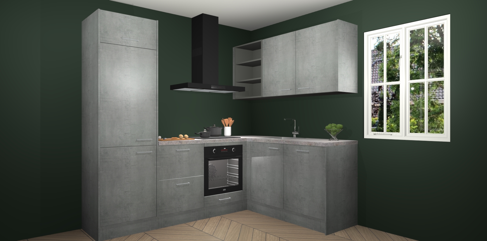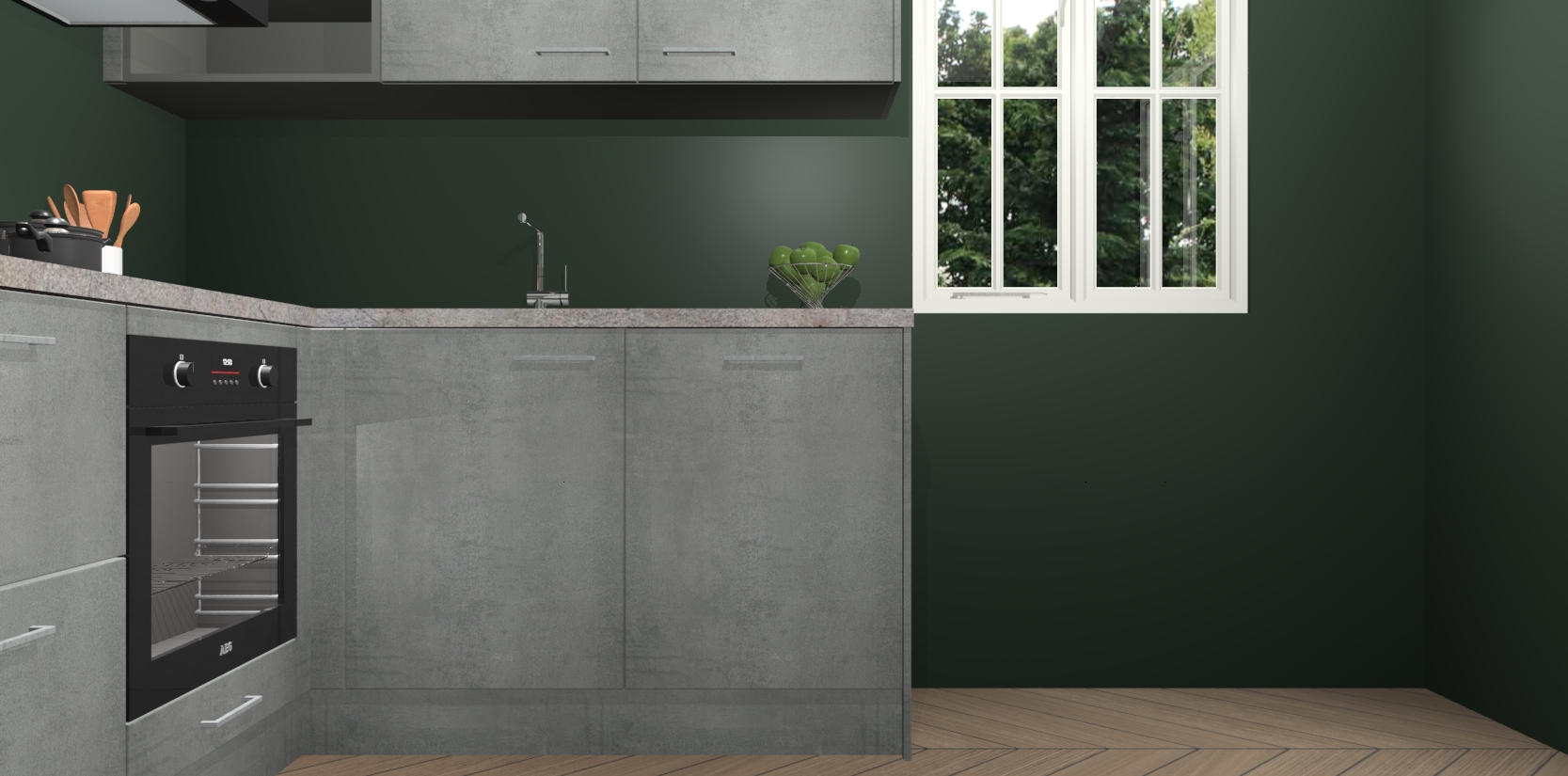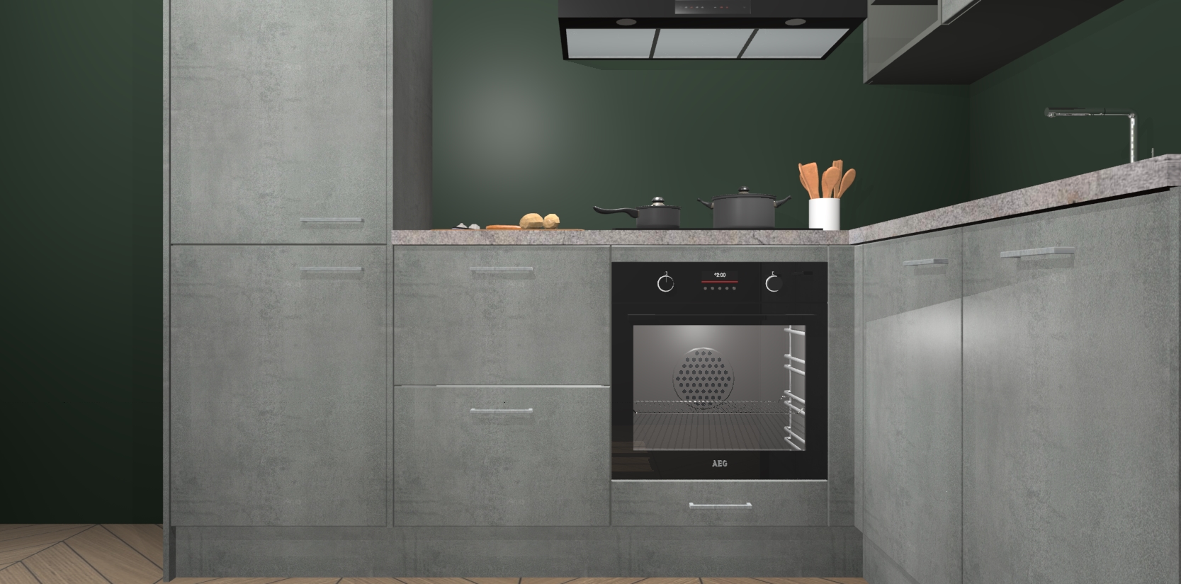 Dit model biedt u voldoende opbergruimte en vijf ingebouwde apparaten: een oven, inductiekookplaat, afzuigkap, vaatwasser en koelkast. Deze apparaten kunnen gemakkelijk worden geüpgrade naar AEG nadat u besteld heeft. De verschillende laden en kastjes bevatten softclose-deuren waardoor ze gezellig dichtvallen met een geruststellend helemaal geruisloos geluid. En dat is nog niet alles! We garanderen ook dat de prijs altijd laag blijft - dus haal nu uw Beton Parelgrijs keuken Krakau terwijl het kan.
