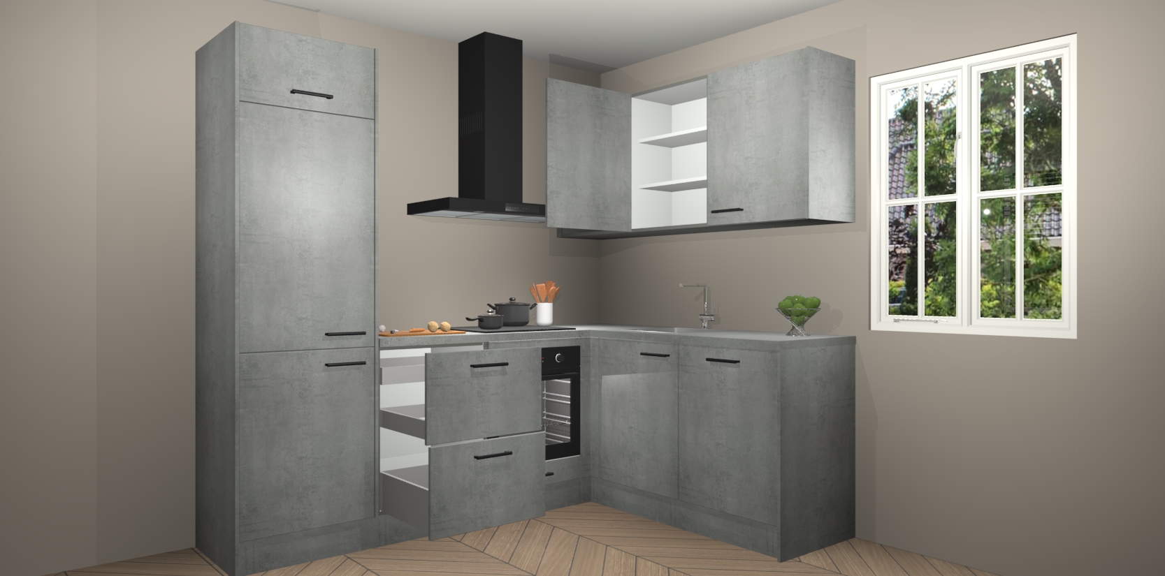 Bestellen was nog nooit zo makkelijk en we leveren met slechts 7 weken; zodra de keuken arriveert staan de kasten voor gemonteerd klaar om er alles aan te doen dat u hem gemakkelijk zelf kunt installeren! Eén ding is zeker: met de Beton Parelgrijs keuken Krakau slaagt u erin modischer, modernere keukens uit te rusten die tientallen jaren meegaan! Haal snel uw Beton Parelgrijs keuken Krakau - of u nu net begint of al 'levenservaring' hebt in de keukendroomloopbaan - want dit topmodel van onze collectie wilt u absoluut niet missen.