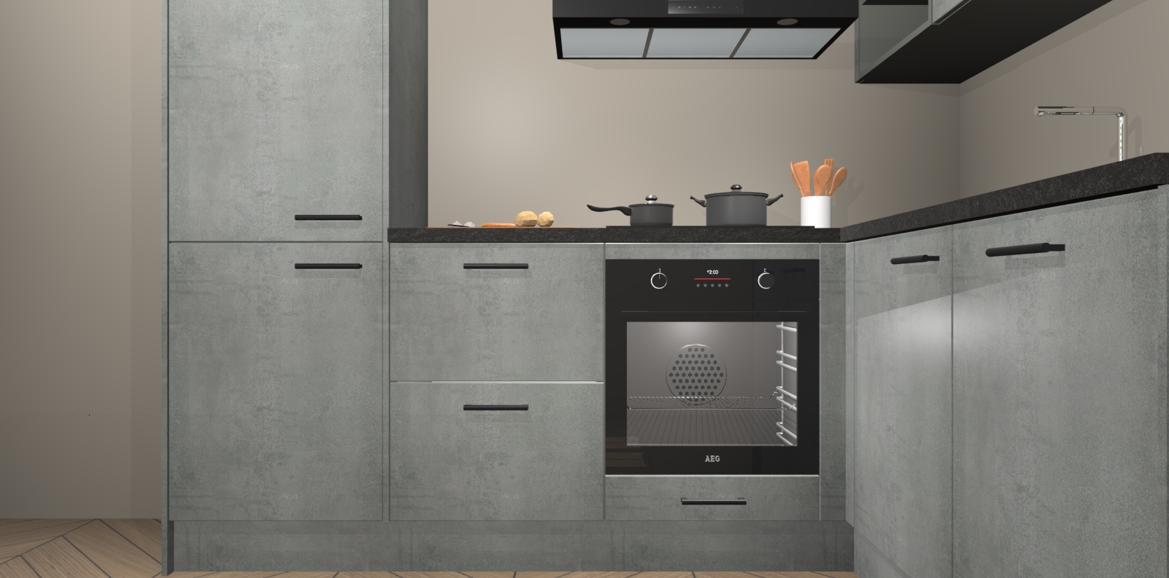 Dit model biedt u voldoende opbergruimte en vijf ingebouwde apparaten: een oven, inductiekookplaat, afzuigkap, vaatwasser en koelkast. Deze apparaten kunnen gemakkelijk worden geüpgrade naar AEG nadat u besteld heeft. De verschillende laden en kastjes bevatten softclose-deuren waardoor ze gezellig dichtvallen met een geruststellend helemaal geruisloos geluid. En dat is nog niet alles! We garanderen ook dat de prijs altijd laag blijft - dus haal nu uw Beton Parelgrijs keuken Krakau terwijl het kan.