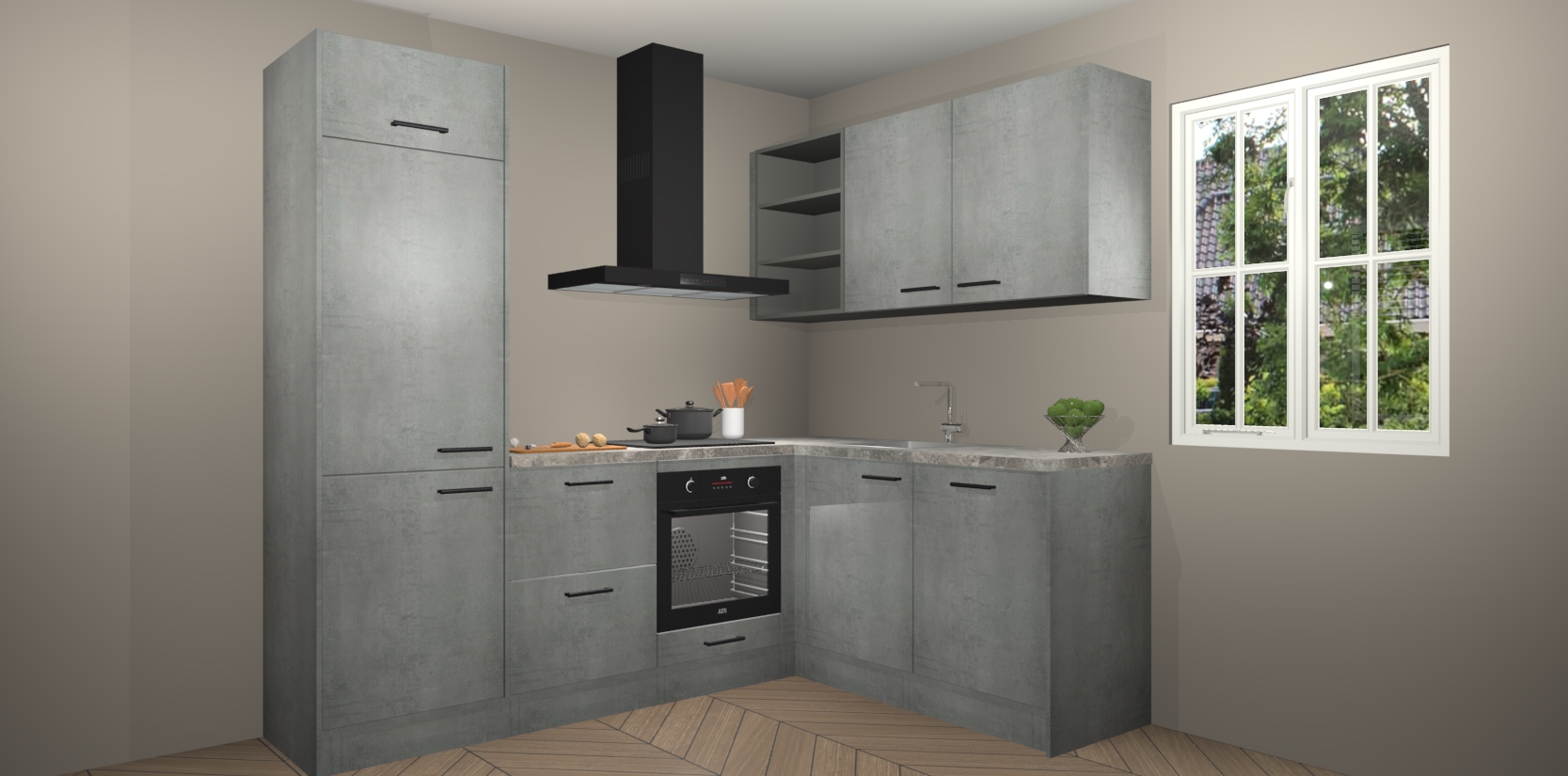 Dit model biedt u voldoende opbergruimte en vijf ingebouwde apparaten: een oven, inductiekookplaat, afzuigkap, vaatwasser en koelkast. Deze apparaten kunnen gemakkelijk worden geüpgrade naar AEG nadat u besteld heeft. De verschillende laden en kastjes bevatten softclose-deuren waardoor ze gezellig dichtvallen met een geruststellend helemaal geruisloos geluid. En dat is nog niet alles! We garanderen ook dat de prijs altijd laag blijft - dus haal nu uw Beton Parelgrijs keuken Krakau terwijl het kan.