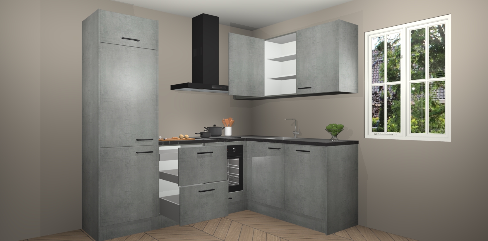 Bestellen was nog nooit zo makkelijk en we leveren met slechts 7 weken; zodra de keuken arriveert staan de kasten voor gemonteerd klaar om er alles aan te doen dat u hem gemakkelijk zelf kunt installeren! Eén ding is zeker: met de Beton Parelgrijs keuken Krakau slaagt u erin modischer, modernere keukens uit te rusten die tientallen jaren meegaan! Haal snel uw Beton Parelgrijs keuken Krakau - of u nu net begint of al 'levenservaring' hebt in de keukendroomloopbaan - want dit topmodel van onze collectie wilt u absoluut niet missen.