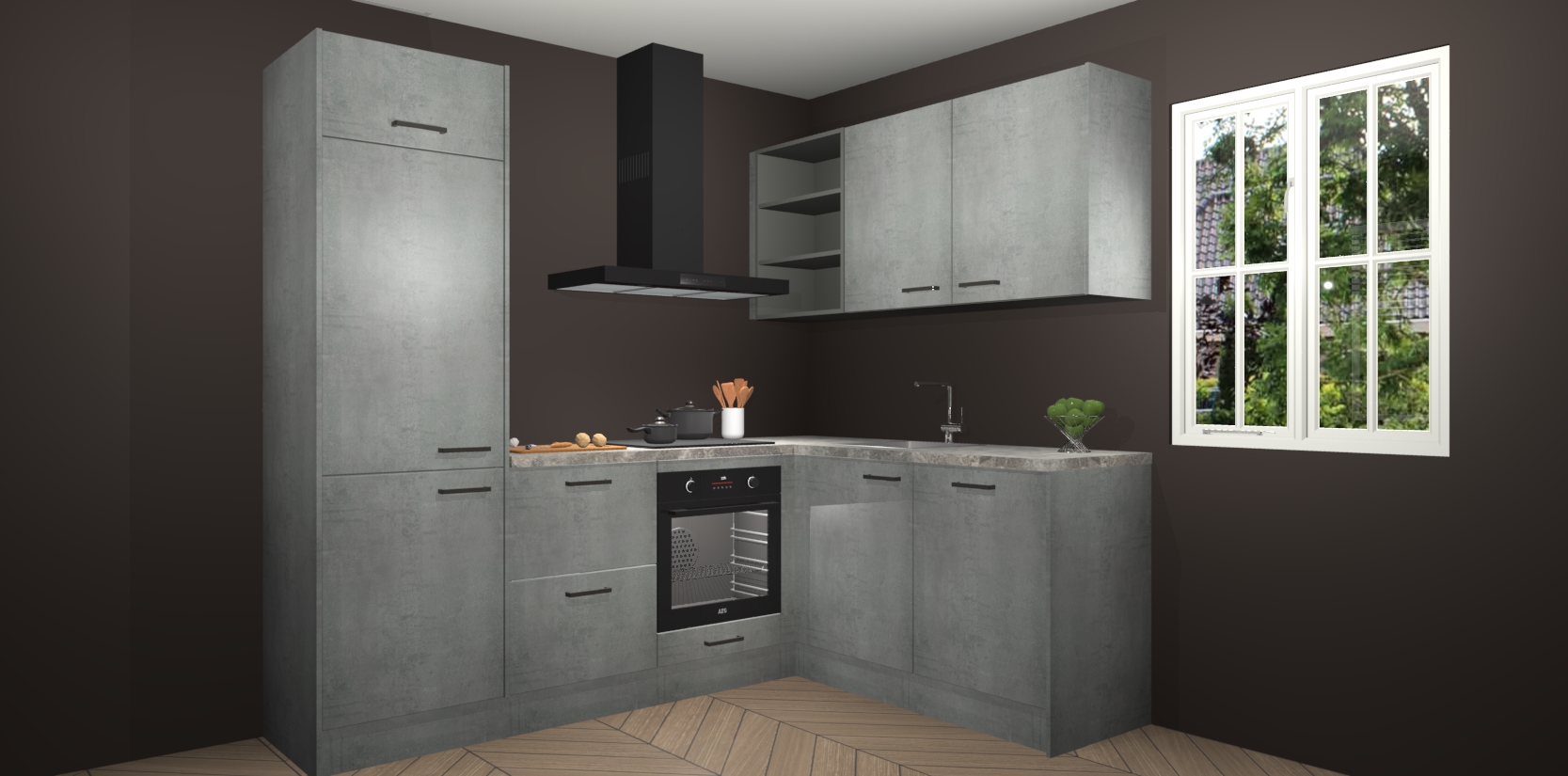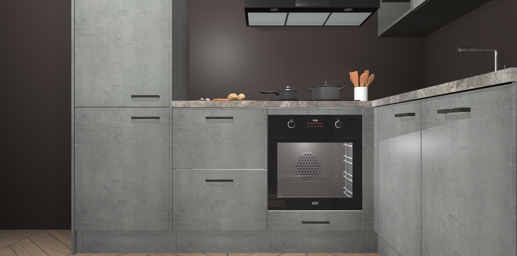 Dit model biedt u voldoende opbergruimte en vijf ingebouwde apparaten: een oven, inductiekookplaat, afzuigkap, vaatwasser en koelkast. Deze apparaten kunnen gemakkelijk worden geüpgrade naar AEG nadat u besteld heeft. De verschillende laden en kastjes bevatten softclose-deuren waardoor ze gezellig dichtvallen met een geruststellend helemaal geruisloos geluid. En dat is nog niet alles! We garanderen ook dat de prijs altijd laag blijft - dus haal nu uw Beton Parelgrijs keuken Krakau terwijl het kan.