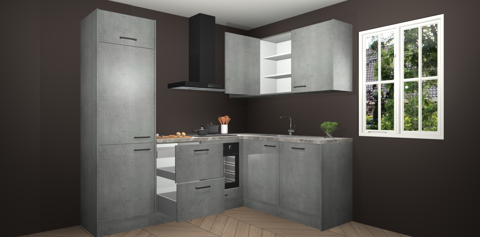 Bestellen was nog nooit zo makkelijk en we leveren met slechts 7 weken; zodra de keuken arriveert staan de kasten voor gemonteerd klaar om er alles aan te doen dat u hem gemakkelijk zelf kunt installeren! Eén ding is zeker: met de Beton Parelgrijs keuken Krakau slaagt u erin modischer, modernere keukens uit te rusten die tientallen jaren meegaan! Haal snel uw Beton Parelgrijs keuken Krakau - of u nu net begint of al 'levenservaring' hebt in de keukendroomloopbaan - want dit topmodel van onze collectie wilt u absoluut niet missen.