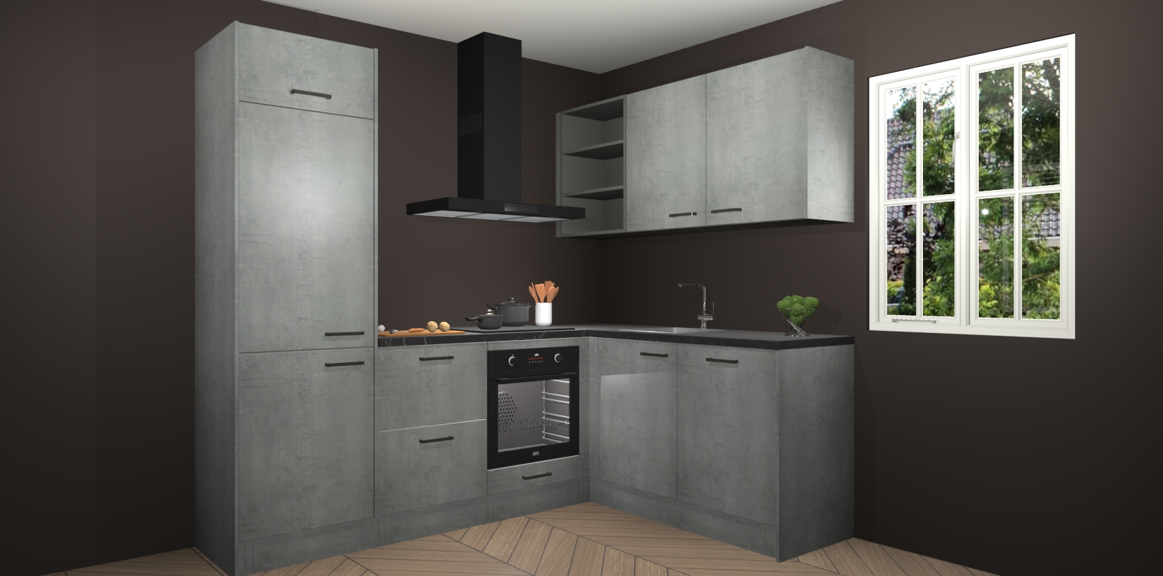 Dit model biedt u voldoende opbergruimte en vijf ingebouwde apparaten: een oven, inductiekookplaat, afzuigkap, vaatwasser en koelkast. Deze apparaten kunnen gemakkelijk worden geüpgrade naar AEG nadat u besteld heeft. De verschillende laden en kastjes bevatten softclose-deuren waardoor ze gezellig dichtvallen met een geruststellend helemaal geruisloos geluid. En dat is nog niet alles! We garanderen ook dat de prijs altijd laag blijft - dus haal nu uw Beton Parelgrijs keuken Krakau terwijl het kan.