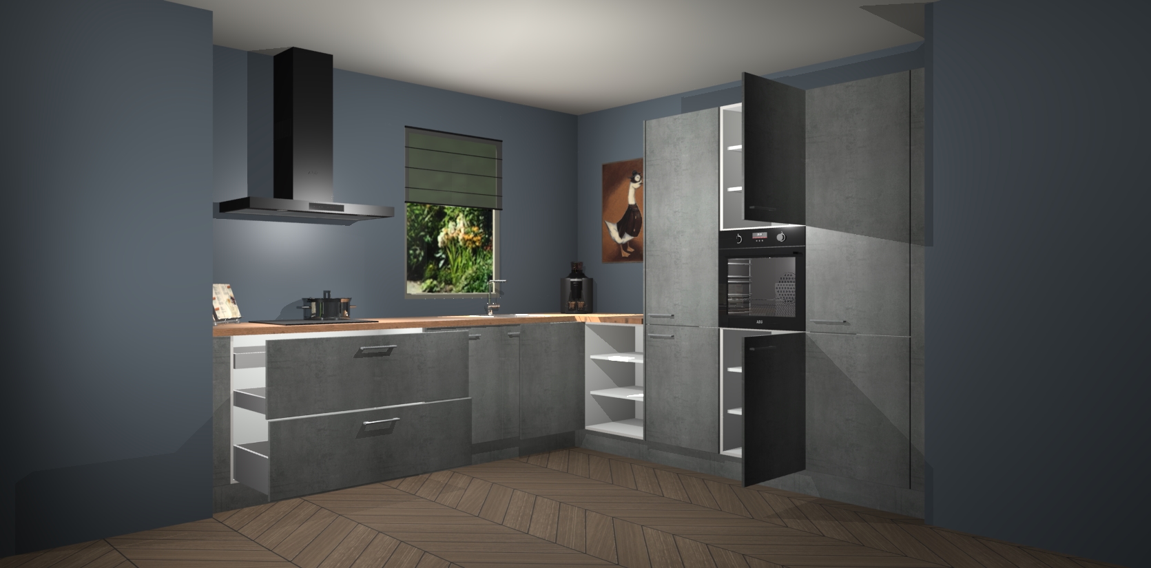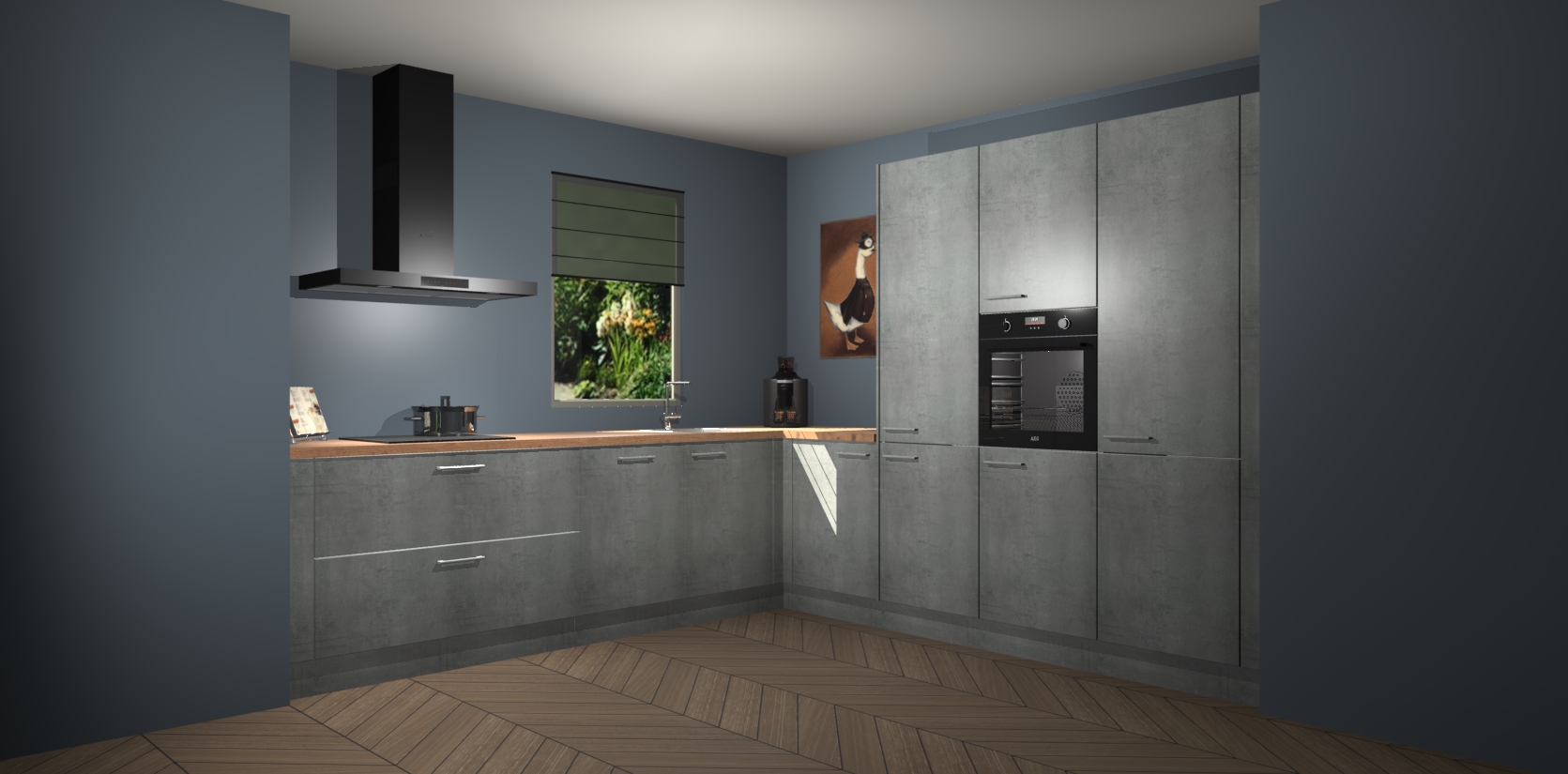 Welkom bij de Beton Parelgrijs keuken Laos. Deze prachtige keuken zal de komende jaren het middelpunt van de belangstelling in uw huis zijn. Uitgerust met vijf inbouwapparaten komt u nooit kookgereedschap tekort. Bovendien geeft de warme houtlook elke ruimte een uitnodigende en tijdloze uitstraling.