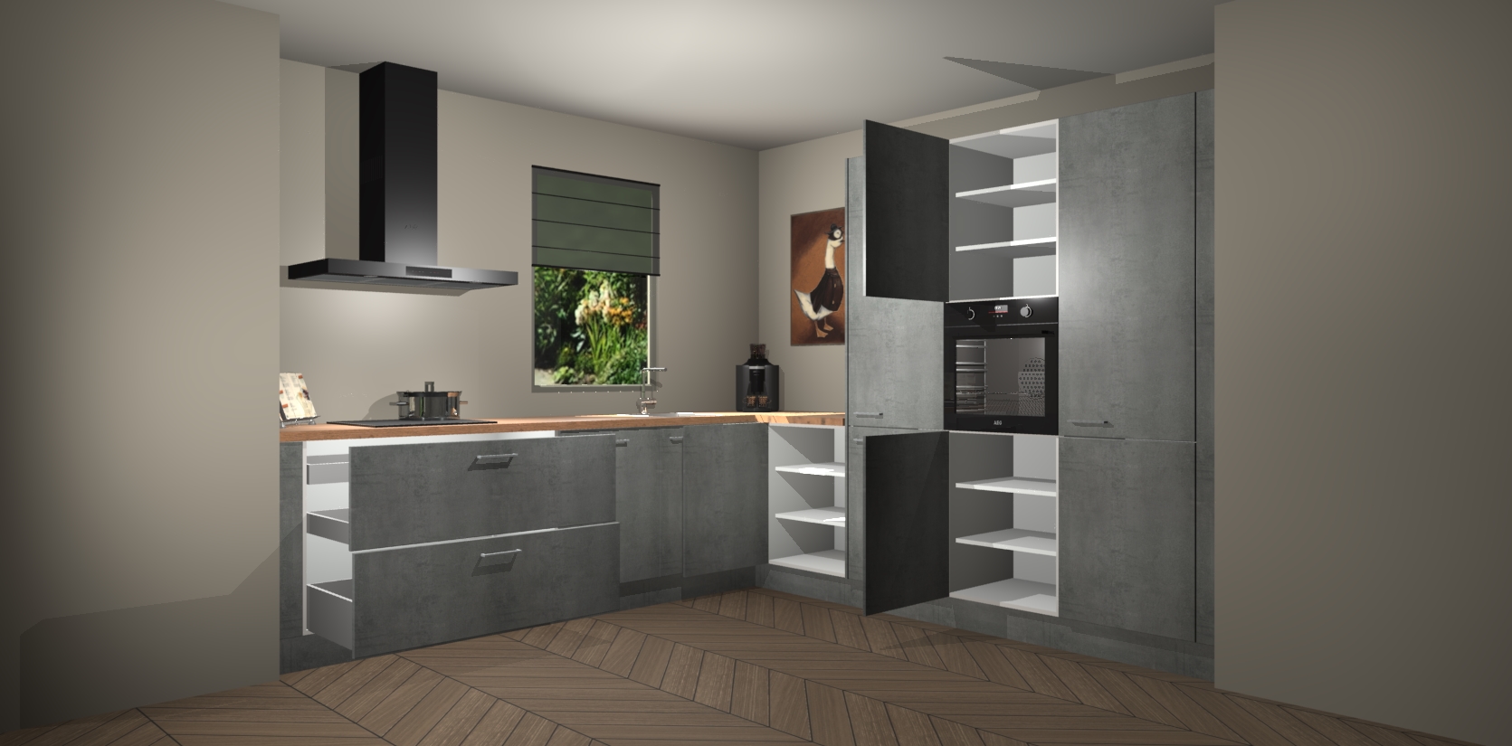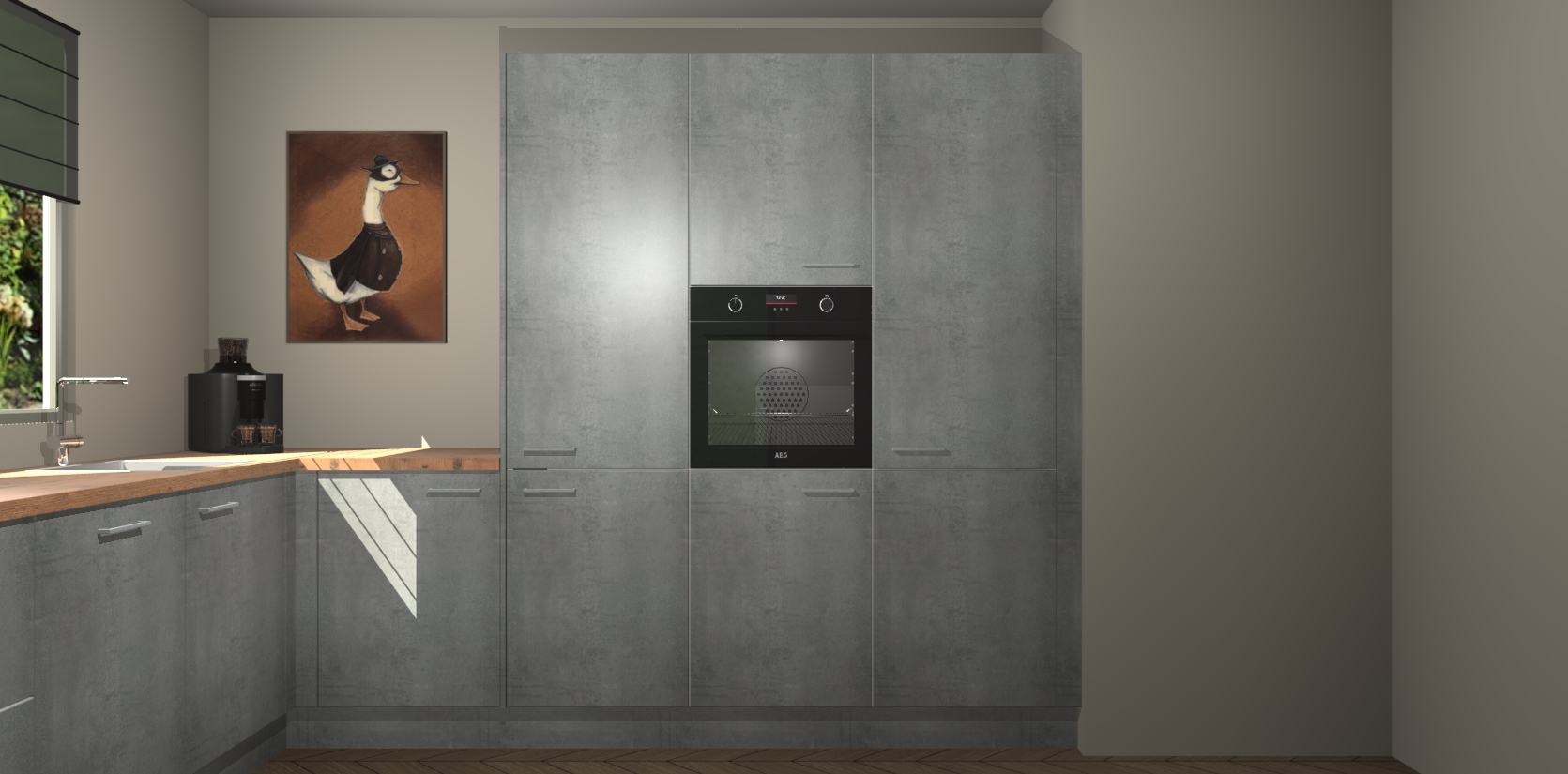 Welkom bij de Beton Parelgrijs keuken Laos. Deze prachtige keuken zal de komende jaren het middelpunt van de belangstelling in uw huis zijn. Uitgerust met vijf inbouwapparaten komt u nooit kookgereedschap tekort. Bovendien geeft de warme houtlook elke ruimte een uitnodigende en tijdloze uitstraling.