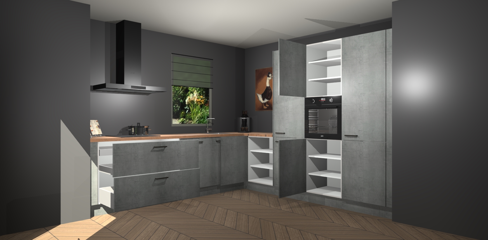 Welkom bij de Beton Parelgrijs keuken Laos. Deze prachtige keuken zal de komende jaren het middelpunt van de belangstelling in uw huis zijn. Uitgerust met vijf inbouwapparaten komt u nooit kookgereedschap tekort. Bovendien geeft de warme houtlook elke ruimte een uitnodigende en tijdloze uitstraling.
