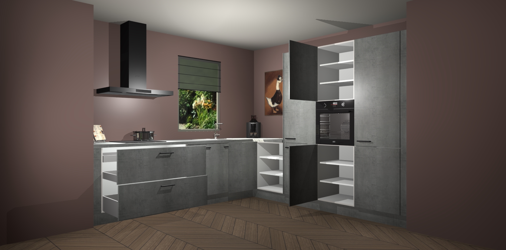 Welkom bij de Beton Parelgrijs keuken Laos. Deze prachtige keuken zal de komende jaren het middelpunt van de belangstelling in uw huis zijn. Uitgerust met vijf inbouwapparaten komt u nooit kookgereedschap tekort. Bovendien geeft de warme houtlook elke ruimte een uitnodigende en tijdloze uitstraling.