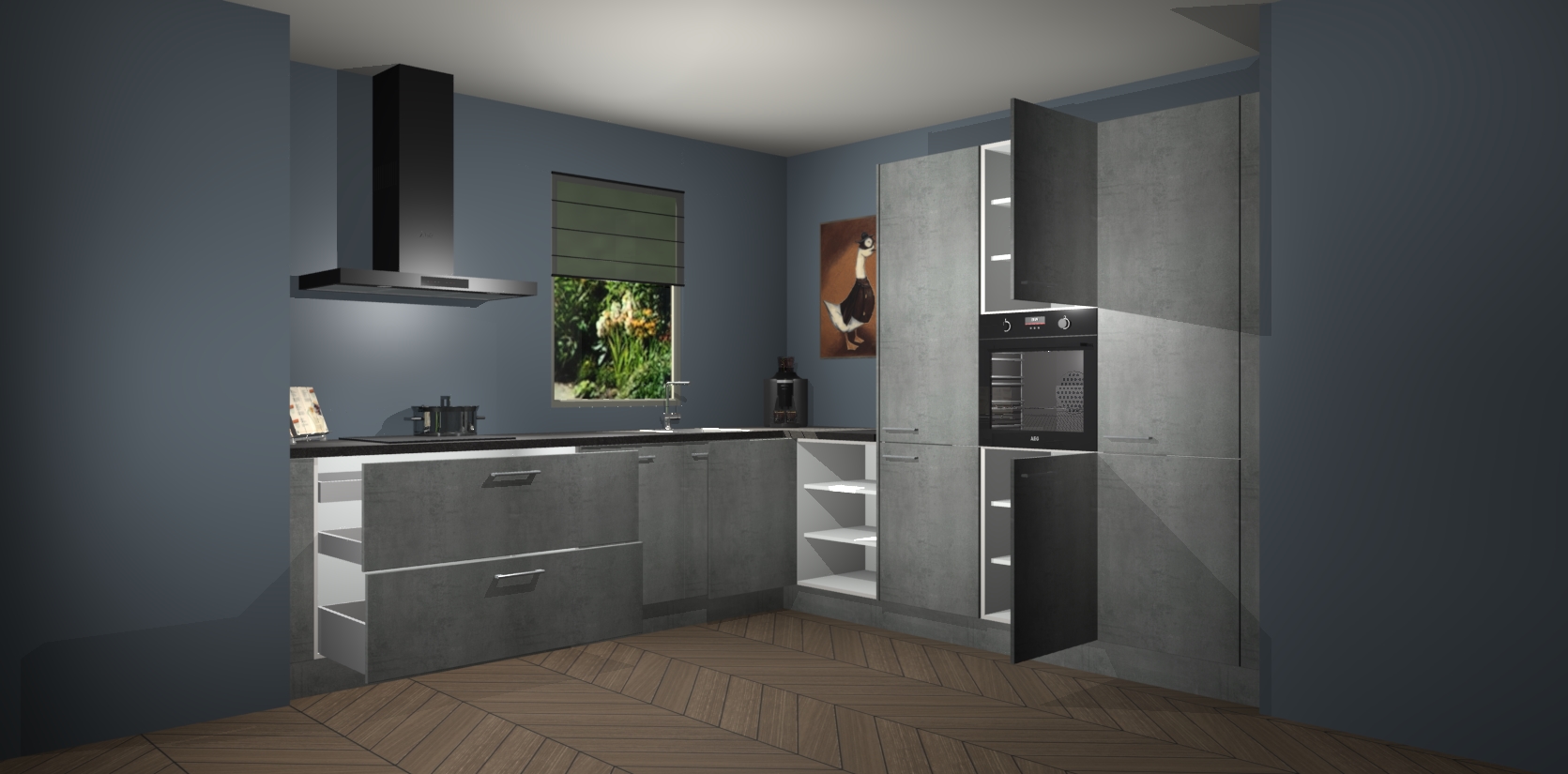 Welkom bij de Beton Parelgrijs keuken Laos. Deze prachtige keuken zal de komende jaren het middelpunt van de belangstelling in uw huis zijn. Uitgerust met vijf inbouwapparaten komt u nooit kookgereedschap tekort. Bovendien geeft de warme houtlook elke ruimte een uitnodigende en tijdloze uitstraling.