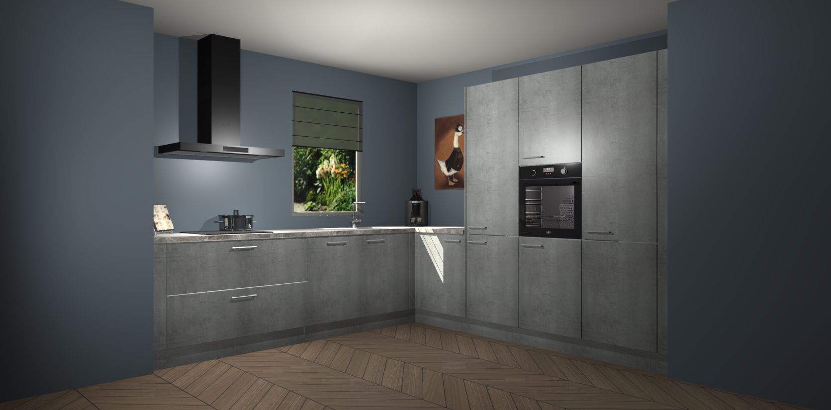 Welkom bij de Beton Parelgrijs keuken Laos. Deze prachtige keuken zal de komende jaren het middelpunt van de belangstelling in uw huis zijn. Uitgerust met vijf inbouwapparaten komt u nooit kookgereedschap tekort. Bovendien geeft de warme houtlook elke ruimte een uitnodigende en tijdloze uitstraling.