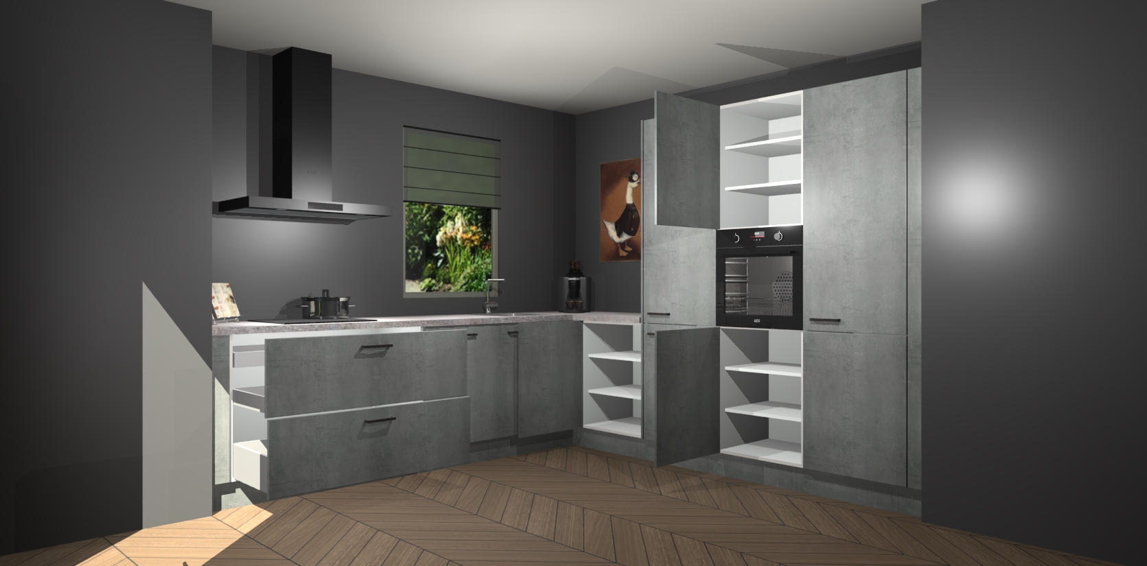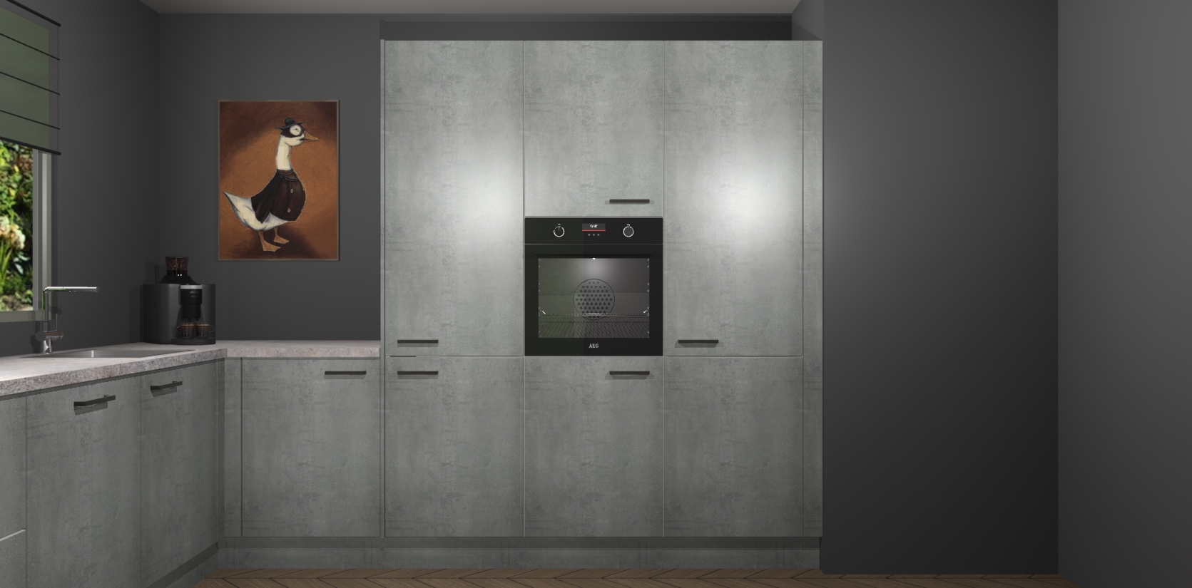 Welkom bij de Beton Parelgrijs keuken Laos. Deze prachtige keuken zal de komende jaren het middelpunt van de belangstelling in uw huis zijn. Uitgerust met vijf inbouwapparaten komt u nooit kookgereedschap tekort. Bovendien geeft de warme houtlook elke ruimte een uitnodigende en tijdloze uitstraling.