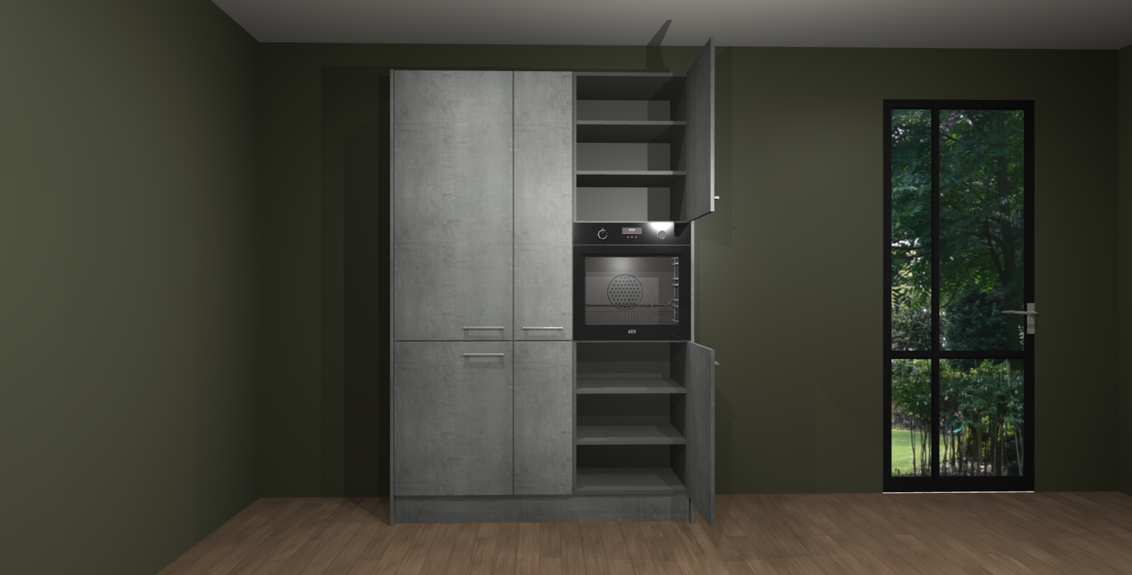 Met een modern, tijdloos design en ruime opslagruimte, zult u zich in no-time thuis voelen in uw nieuwe keuken. Uw leven wordt eenvoudiger met de soft-close deuren die voor het ultieme stille comfort zorgen - geen geluid dat u stoort terwijl u kookt. Ook is de keuken voorzien van 5 ingebouwde apparaten: een oven, inductie kookplaat, afzuigkap, vaatwasser en koelkast. Deze kunnen gemakkelijk na bestelling worden bijgewerkt naar AEG - waardoor uw luxe ervaring compleet is.
