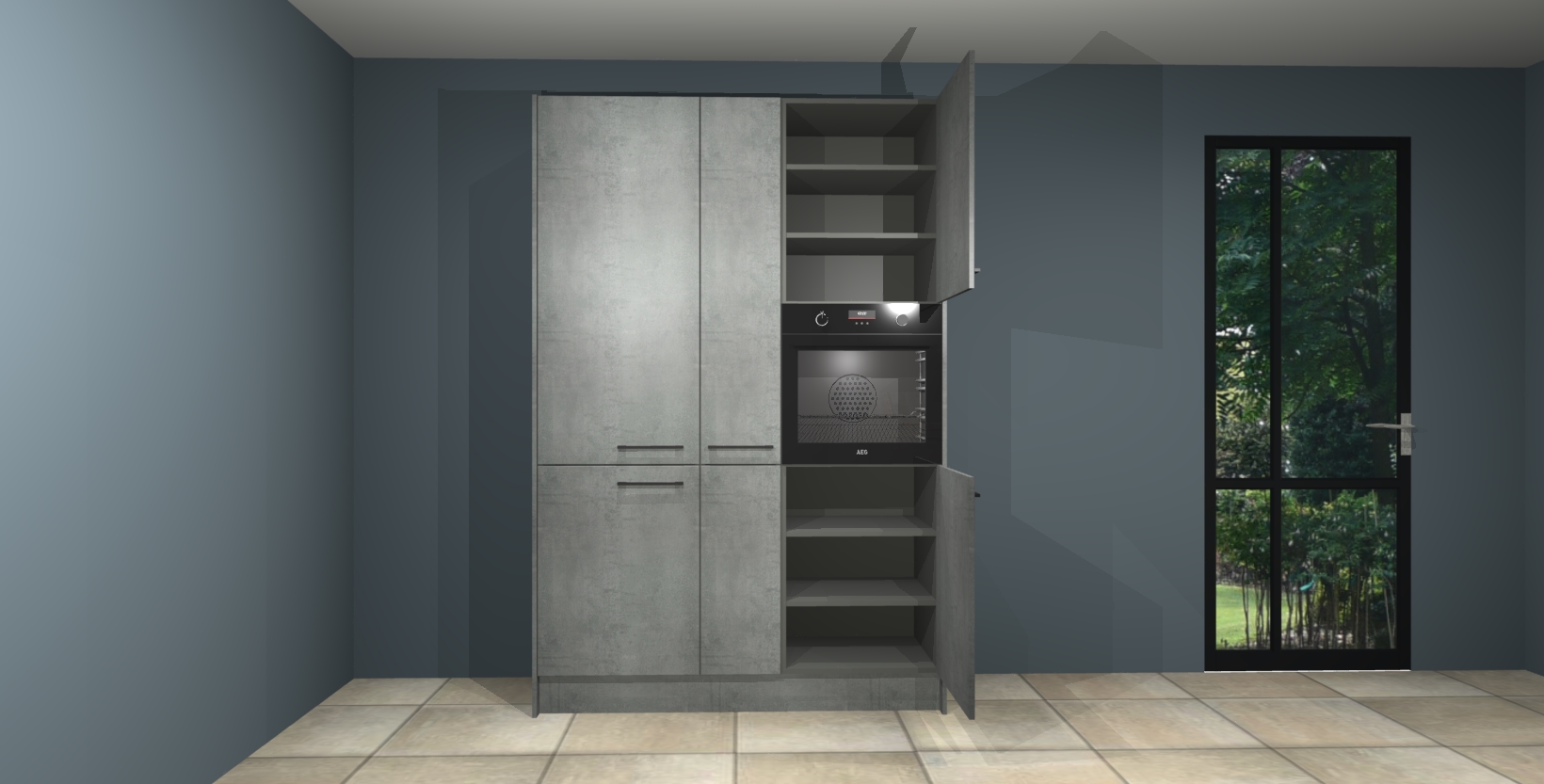 Met een modern, tijdloos design en ruime opslagruimte, zult u zich in no-time thuis voelen in uw nieuwe keuken. Uw leven wordt eenvoudiger met de soft-close deuren die voor het ultieme stille comfort zorgen - geen geluid dat u stoort terwijl u kookt. Ook is de keuken voorzien van 5 ingebouwde apparaten: een oven, inductie kookplaat, afzuigkap, vaatwasser en koelkast. Deze kunnen gemakkelijk na bestelling worden bijgewerkt naar AEG - waardoor uw luxe ervaring compleet is.