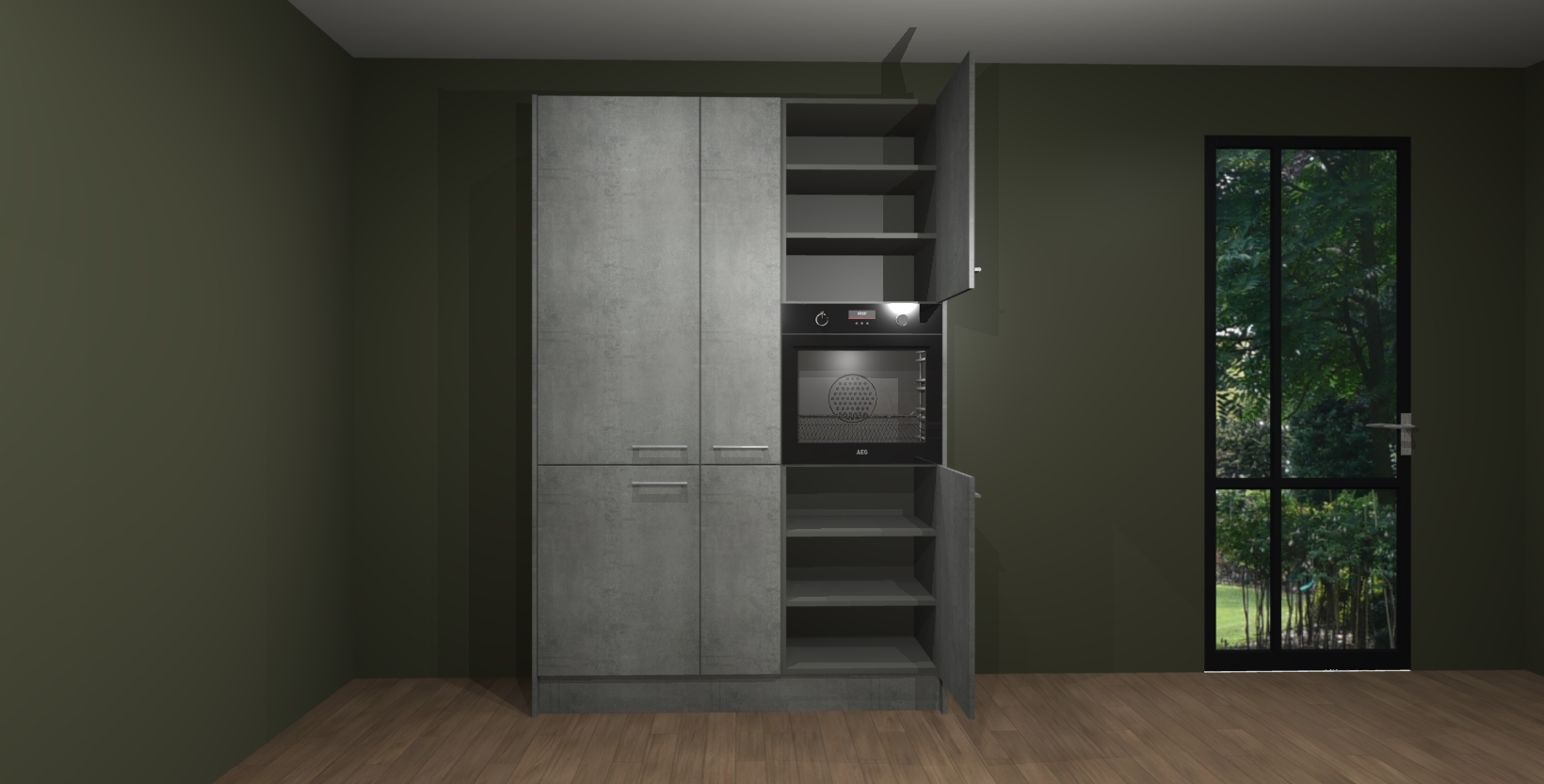 Met een modern, tijdloos design en ruime opslagruimte, zult u zich in no-time thuis voelen in uw nieuwe keuken. Uw leven wordt eenvoudiger met de soft-close deuren die voor het ultieme stille comfort zorgen - geen geluid dat u stoort terwijl u kookt. Ook is de keuken voorzien van 5 ingebouwde apparaten: een oven, inductie kookplaat, afzuigkap, vaatwasser en koelkast. Deze kunnen gemakkelijk na bestelling worden bijgewerkt naar AEG - waardoor uw luxe ervaring compleet is.