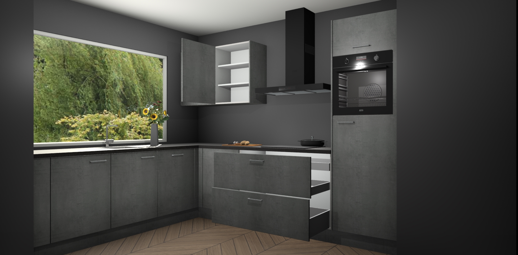 Beton antracietKeukenmeubelen