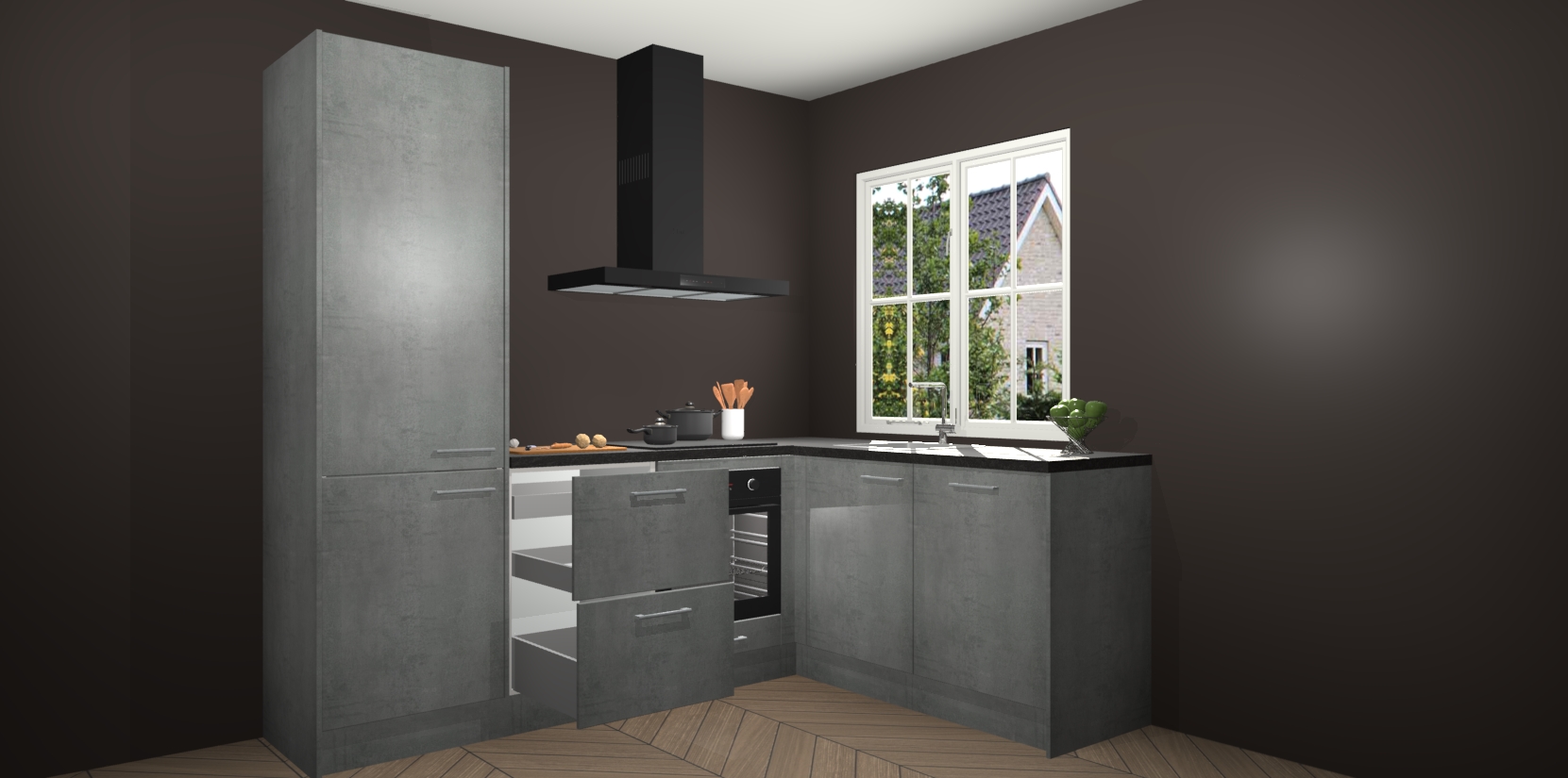 De Beton Parelgrijs keuken Linz is de perfecte keuze voor uw nieuwe moderne en tijdloze keuken. Ga voor moderne en tijdloze elegantie in uw keuken. De prachtige hoekkeuken biedt een verfrissende kijk op de manier waarop we ons vertrouwde keukenontwerp kunnen aanpassen in een nieuwe stijl. Één blik om alles te zien: zo mooi dat het bijna magisch lijkt.