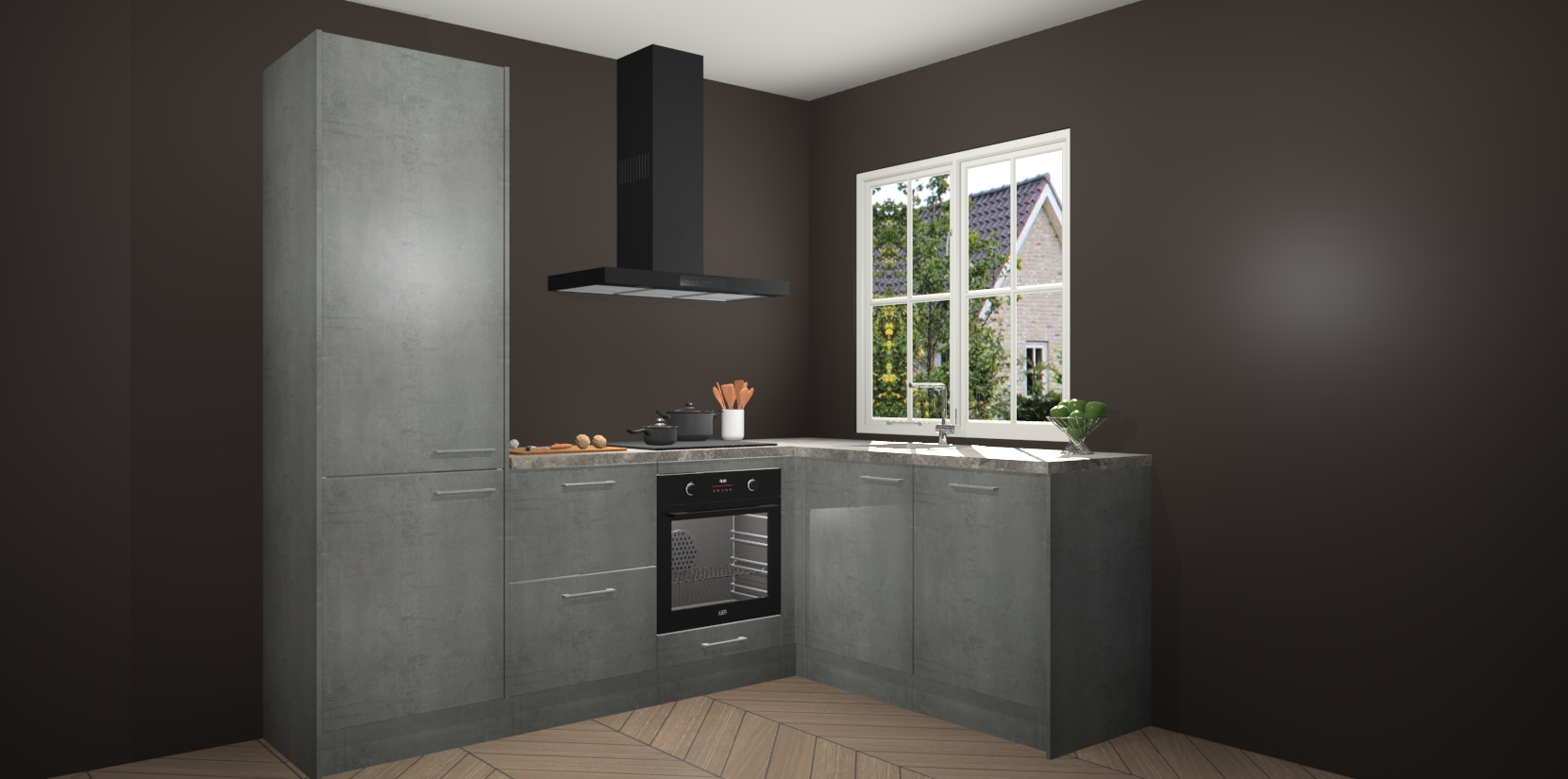 De Beton Parelgrijs keuken Linz is de perfecte keuze voor uw nieuwe moderne en tijdloze keuken. Ga voor moderne en tijdloze elegantie in uw keuken. De prachtige hoekkeuken biedt een verfrissende kijk op de manier waarop we ons vertrouwde keukenontwerp kunnen aanpassen in een nieuwe stijl. Één blik om alles te zien: zo mooi dat het bijna magisch lijkt.