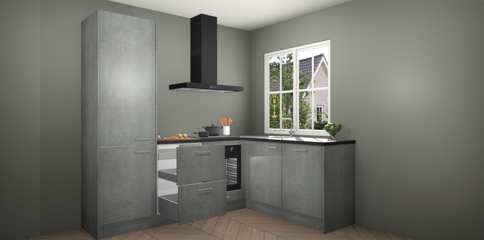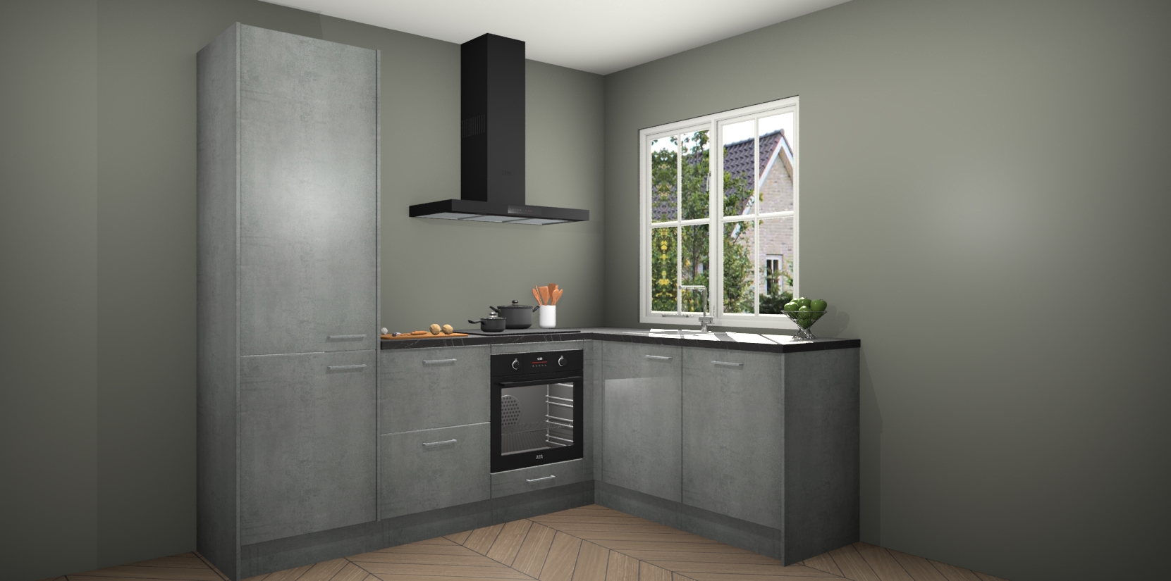 De Beton Parelgrijs keuken Linz is de perfecte keuze voor uw nieuwe moderne en tijdloze keuken. Ga voor moderne en tijdloze elegantie in uw keuken. De prachtige hoekkeuken biedt een verfrissende kijk op de manier waarop we ons vertrouwde keukenontwerp kunnen aanpassen in een nieuwe stijl. Één blik om alles te zien: zo mooi dat het bijna magisch lijkt.