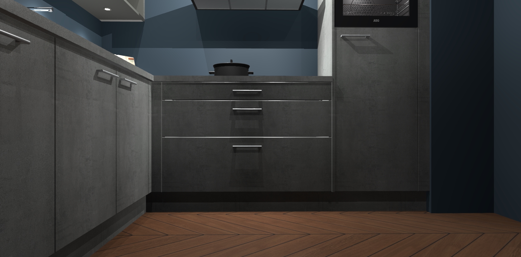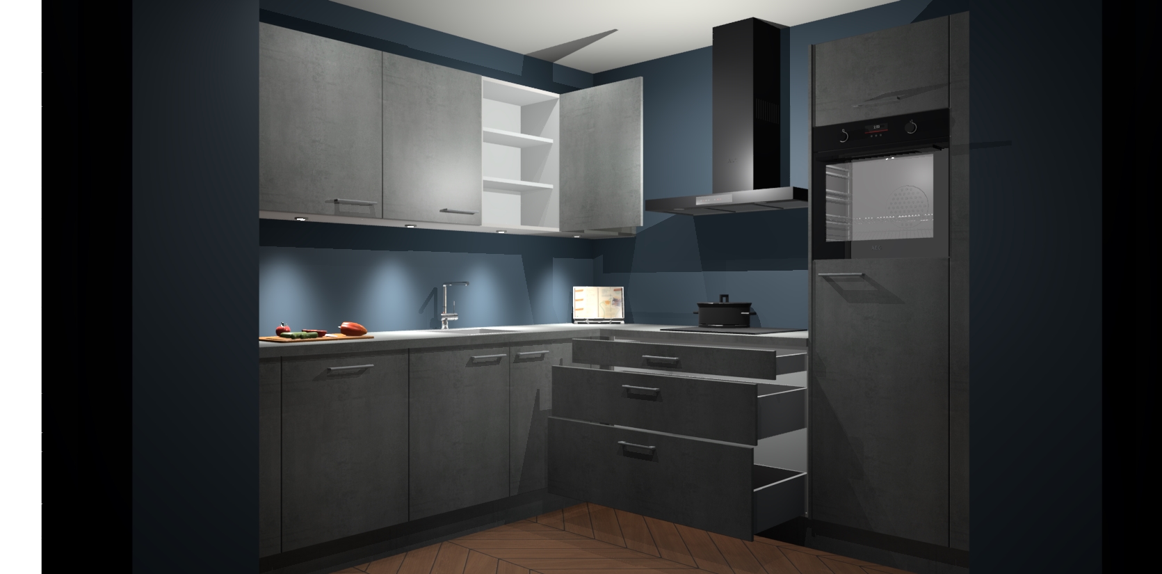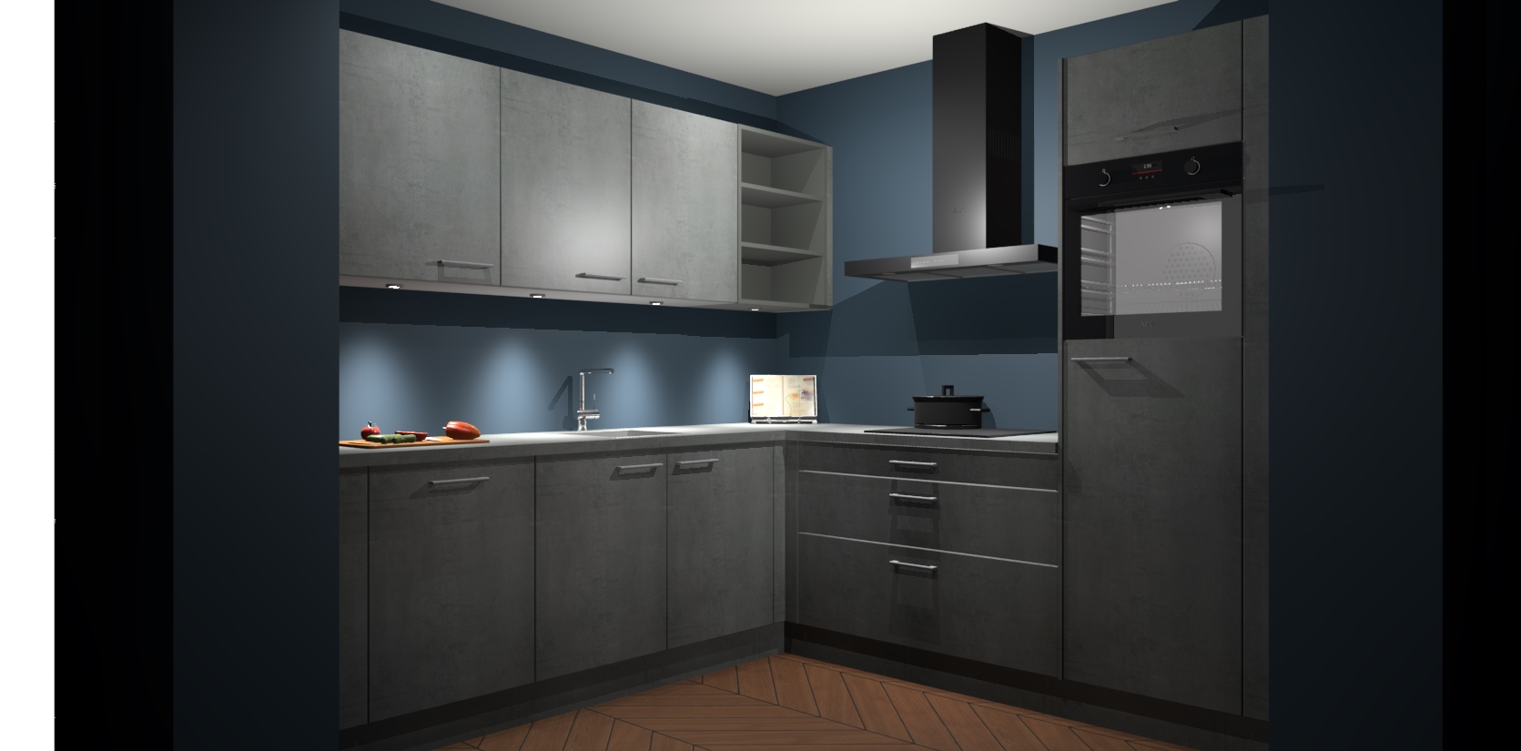 Met een modern, tijdloos design en ruime opslagruimte, zult u zich in no-time thuis voelen in uw nieuwe keuken. Uw leven wordt eenvoudiger met de soft-close deuren die voor het ultieme stille comfort zorgen - geen geluid dat u stoort terwijl u kookt. Ook is de keuken voorzien van 5 ingebouwde apparaten: een oven, inductie kookplaat, afzuigkap, vaatwasser en koelkast. Deze kunnen gemakkelijk na bestelling worden bijgewerkt naar AEG - waardoor uw luxe ervaring compleet is.