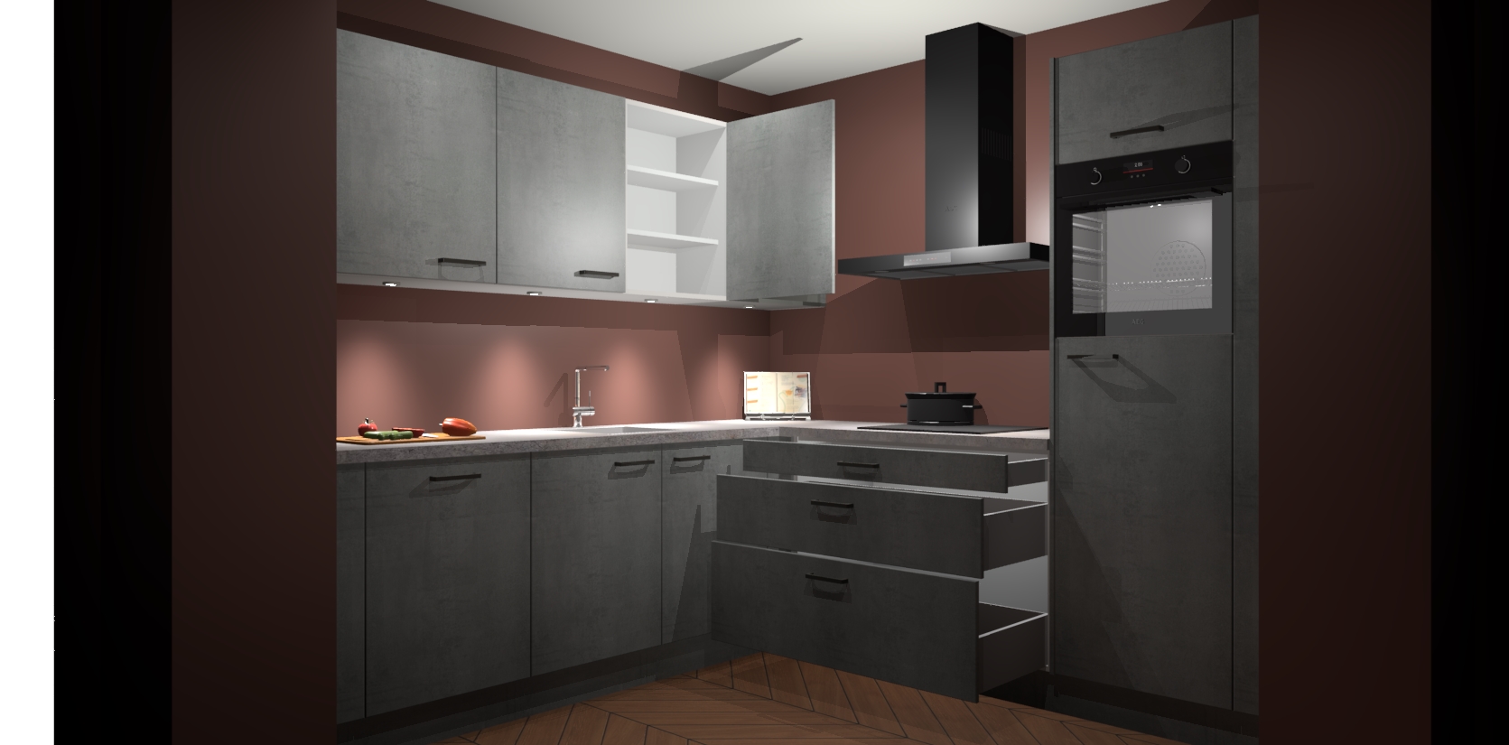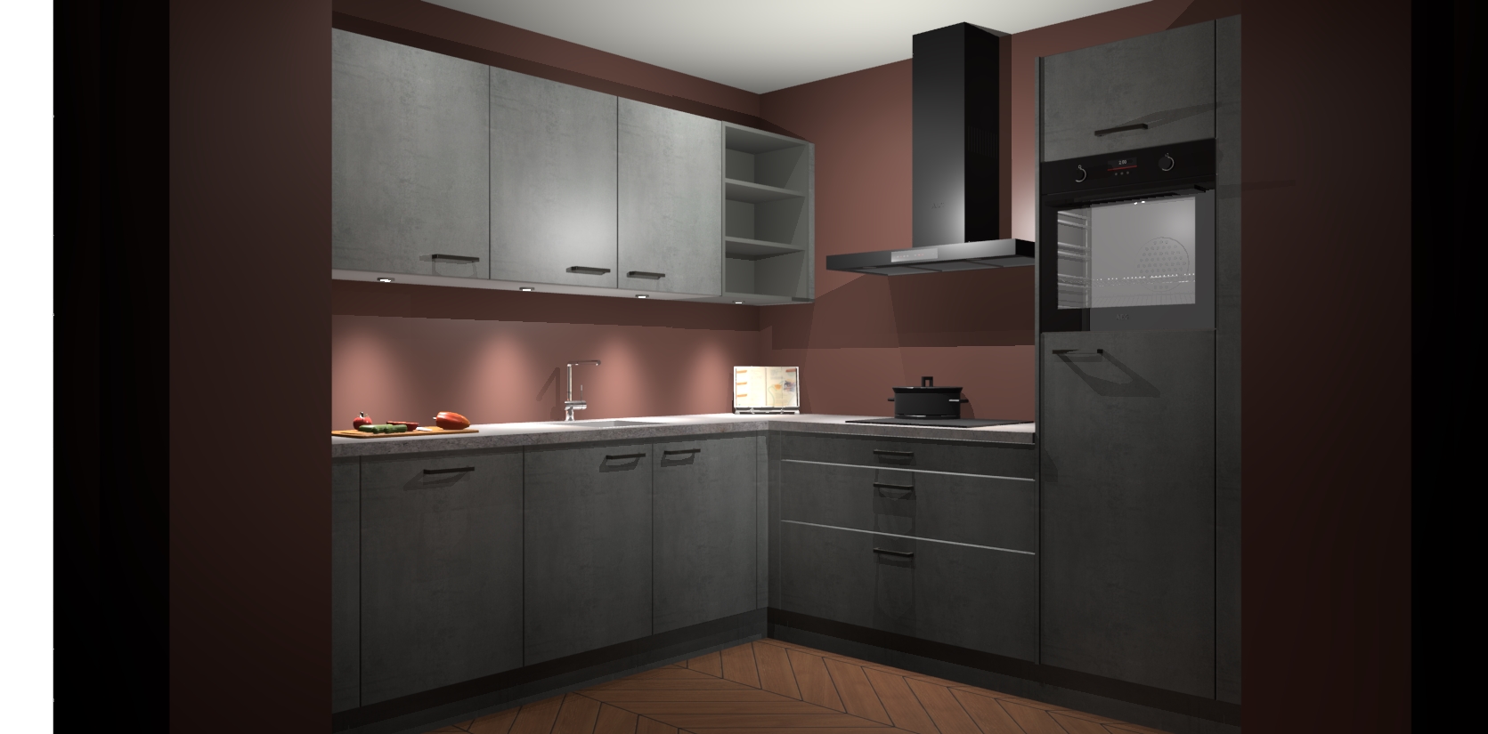 Met een modern, tijdloos design en ruime opslagruimte, zult u zich in no-time thuis voelen in uw nieuwe keuken. Uw leven wordt eenvoudiger met de soft-close deuren die voor het ultieme stille comfort zorgen - geen geluid dat u stoort terwijl u kookt. Ook is de keuken voorzien van 5 ingebouwde apparaten: een oven, inductie kookplaat, afzuigkap, vaatwasser en koelkast. Deze kunnen gemakkelijk na bestelling worden bijgewerkt naar AEG - waardoor uw luxe ervaring compleet is.