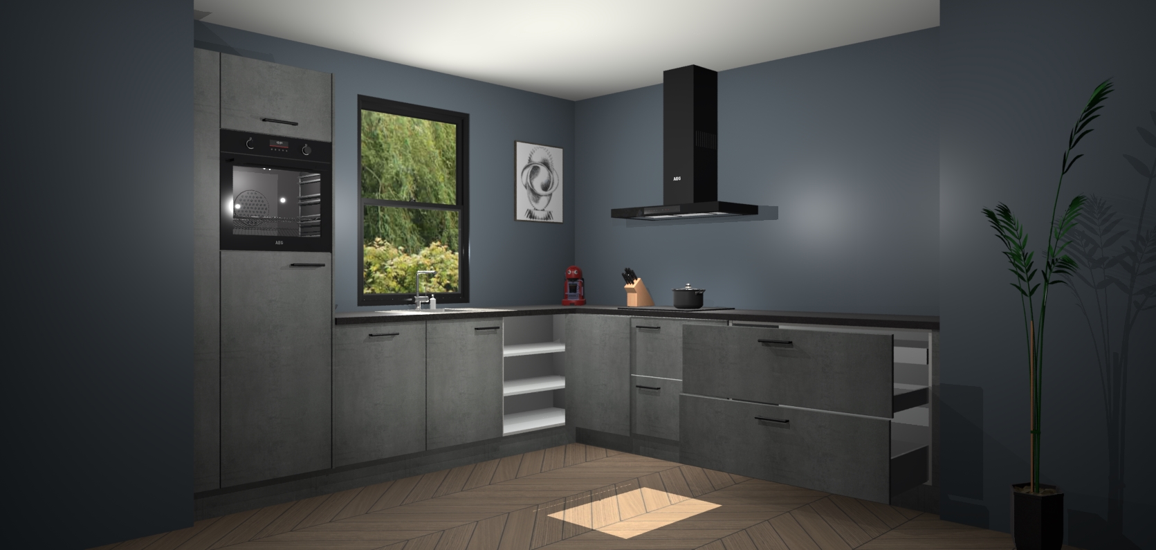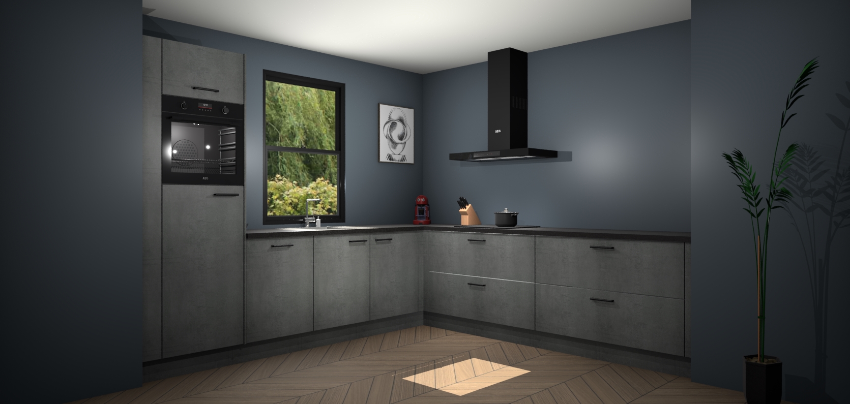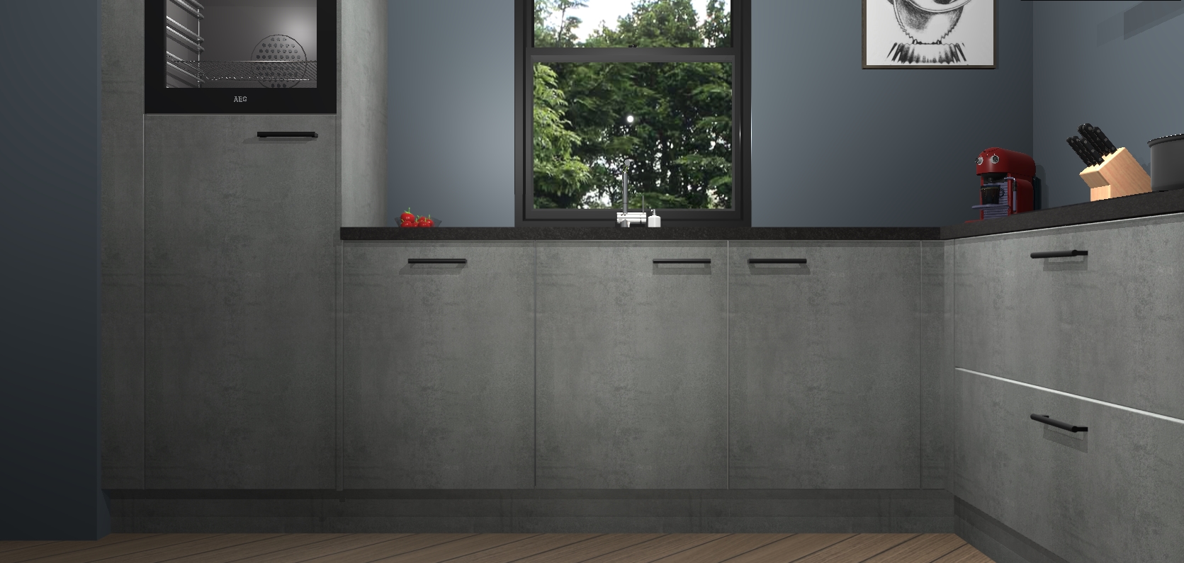 Welkom bij de Beton parelgrijs keuken Lublin. Deze prachtige keuken zal de komende jaren het middelpunt van de belangstelling in uw huis zijn. Uitgerust met vijf inbouwapparaten komt u nooit kookgereedschap tekort. Bovendien geeft de warme houtlook elke ruimte een uitnodigende en tijdloze uitstraling.