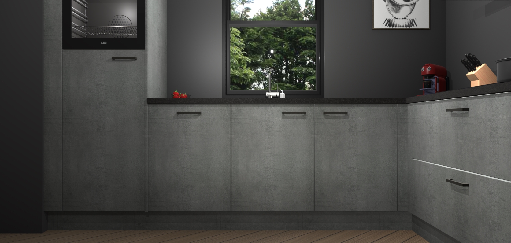 Welkom bij de Beton parelgrijs keuken Lublin. Deze prachtige keuken zal de komende jaren het middelpunt van de belangstelling in uw huis zijn. Uitgerust met vijf inbouwapparaten komt u nooit kookgereedschap tekort. Bovendien geeft de warme houtlook elke ruimte een uitnodigende en tijdloze uitstraling.