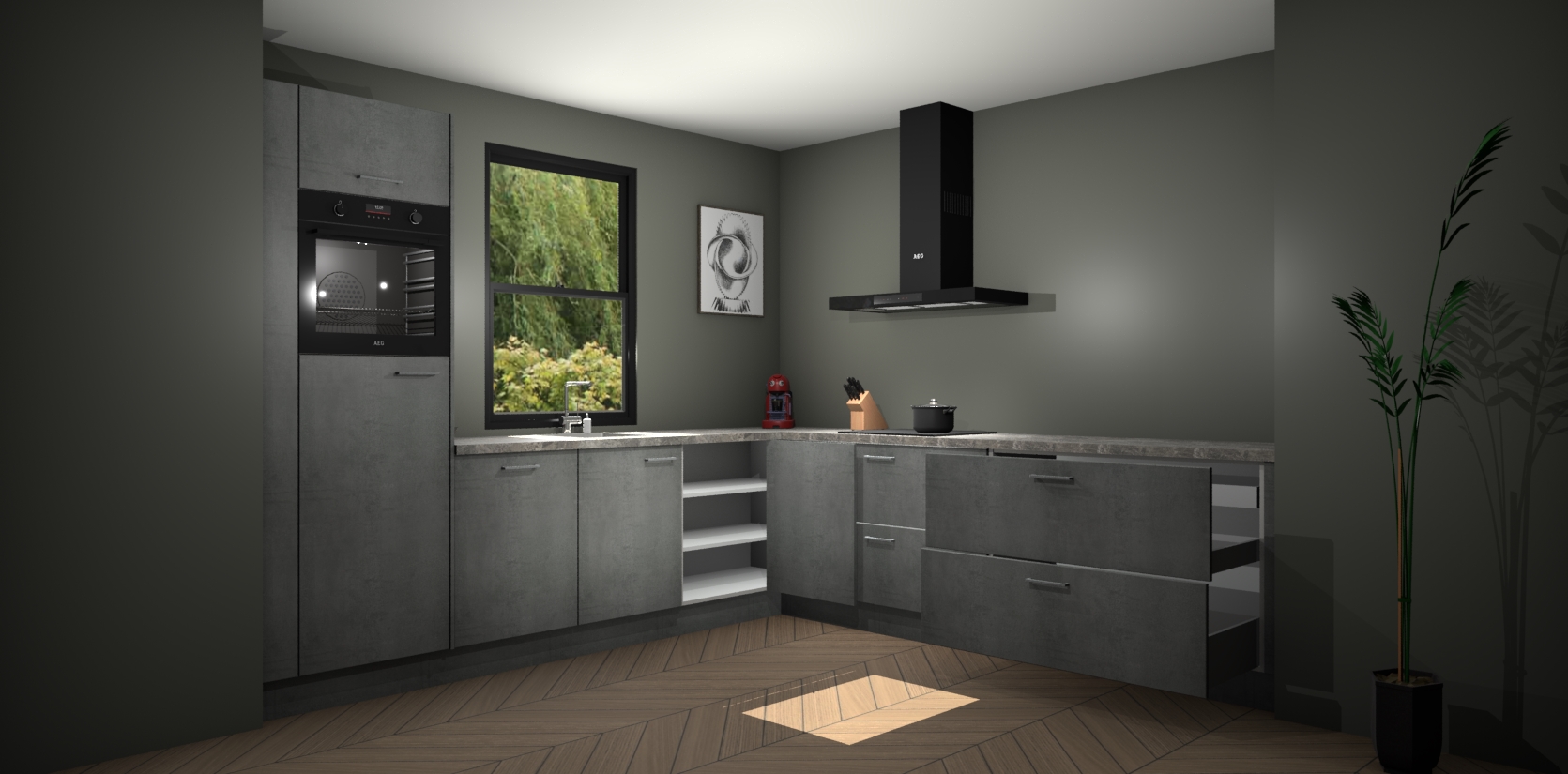Inclusief plinten, stelpoten en werkblad