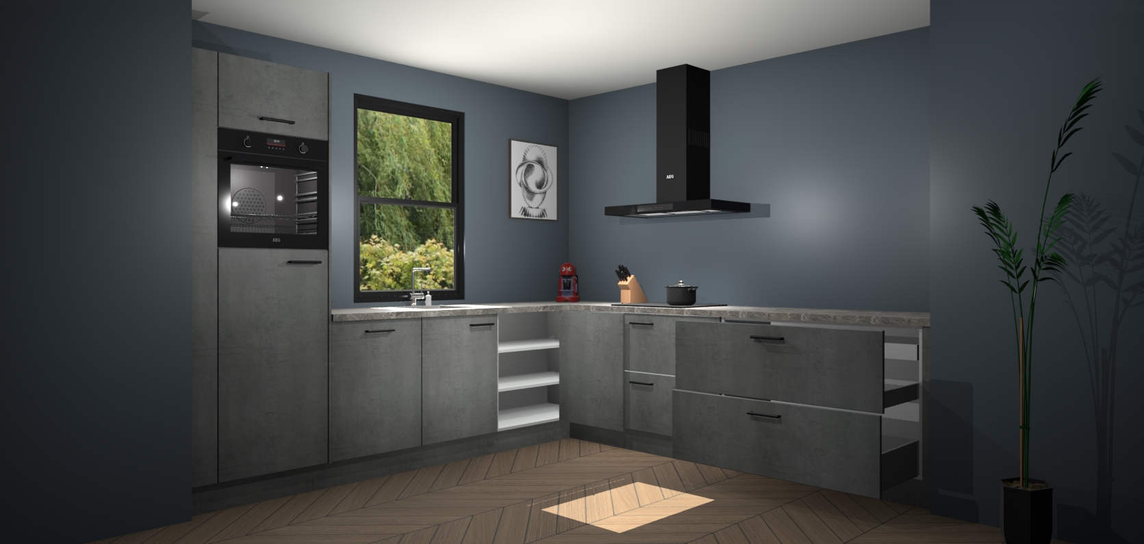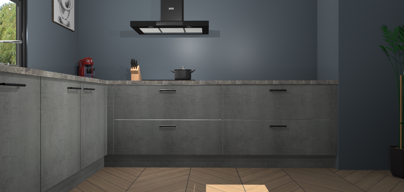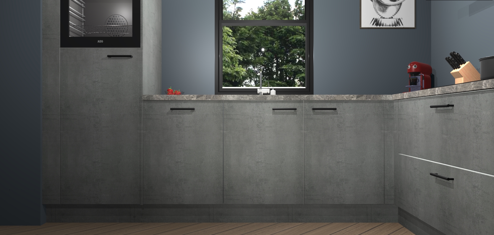 Welkom bij de Beton parelgrijs keuken Lublin. Deze prachtige keuken zal de komende jaren het middelpunt van de belangstelling in uw huis zijn. Uitgerust met vijf inbouwapparaten komt u nooit kookgereedschap tekort. Bovendien geeft de warme houtlook elke ruimte een uitnodigende en tijdloze uitstraling.