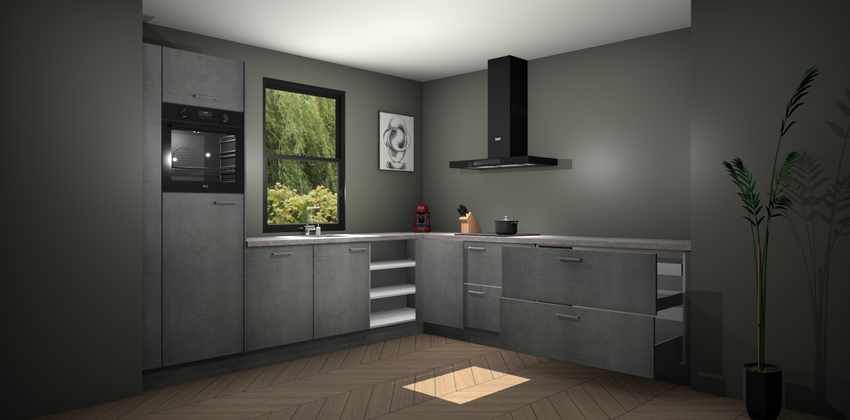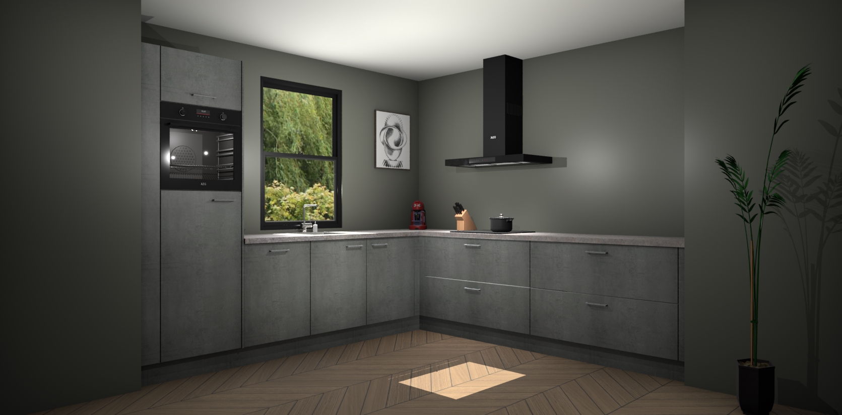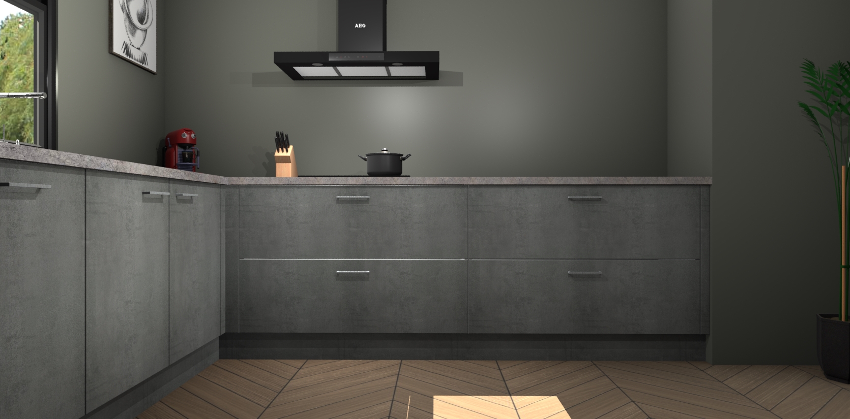 Welkom bij de Beton parelgrijs keuken Lublin. Deze prachtige keuken zal de komende jaren het middelpunt van de belangstelling in uw huis zijn. Uitgerust met vijf inbouwapparaten komt u nooit kookgereedschap tekort. Bovendien geeft de warme houtlook elke ruimte een uitnodigende en tijdloze uitstraling.