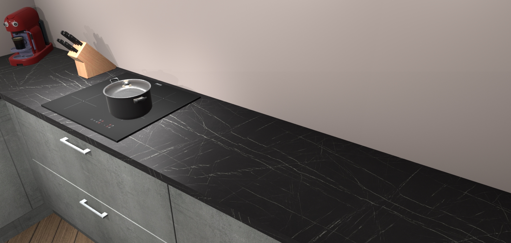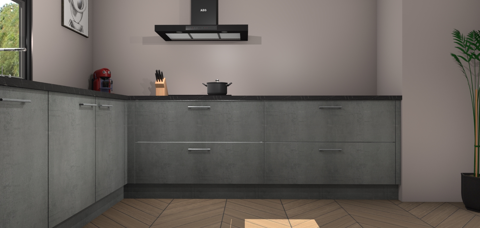 Inclusief plinten, stelpoten en werkblad