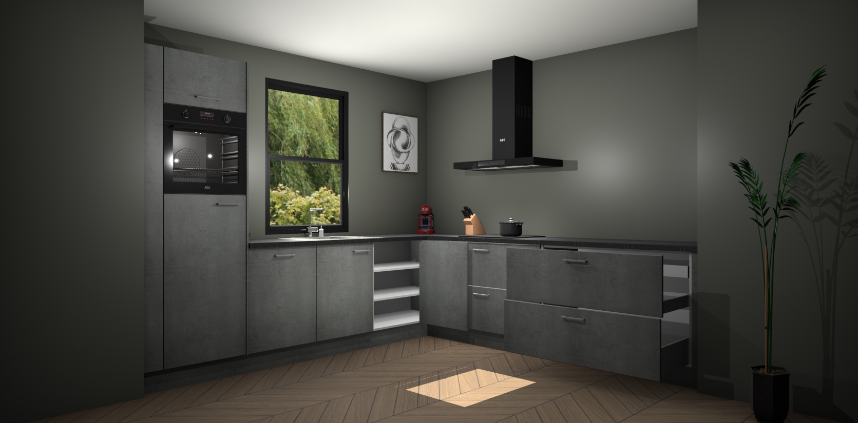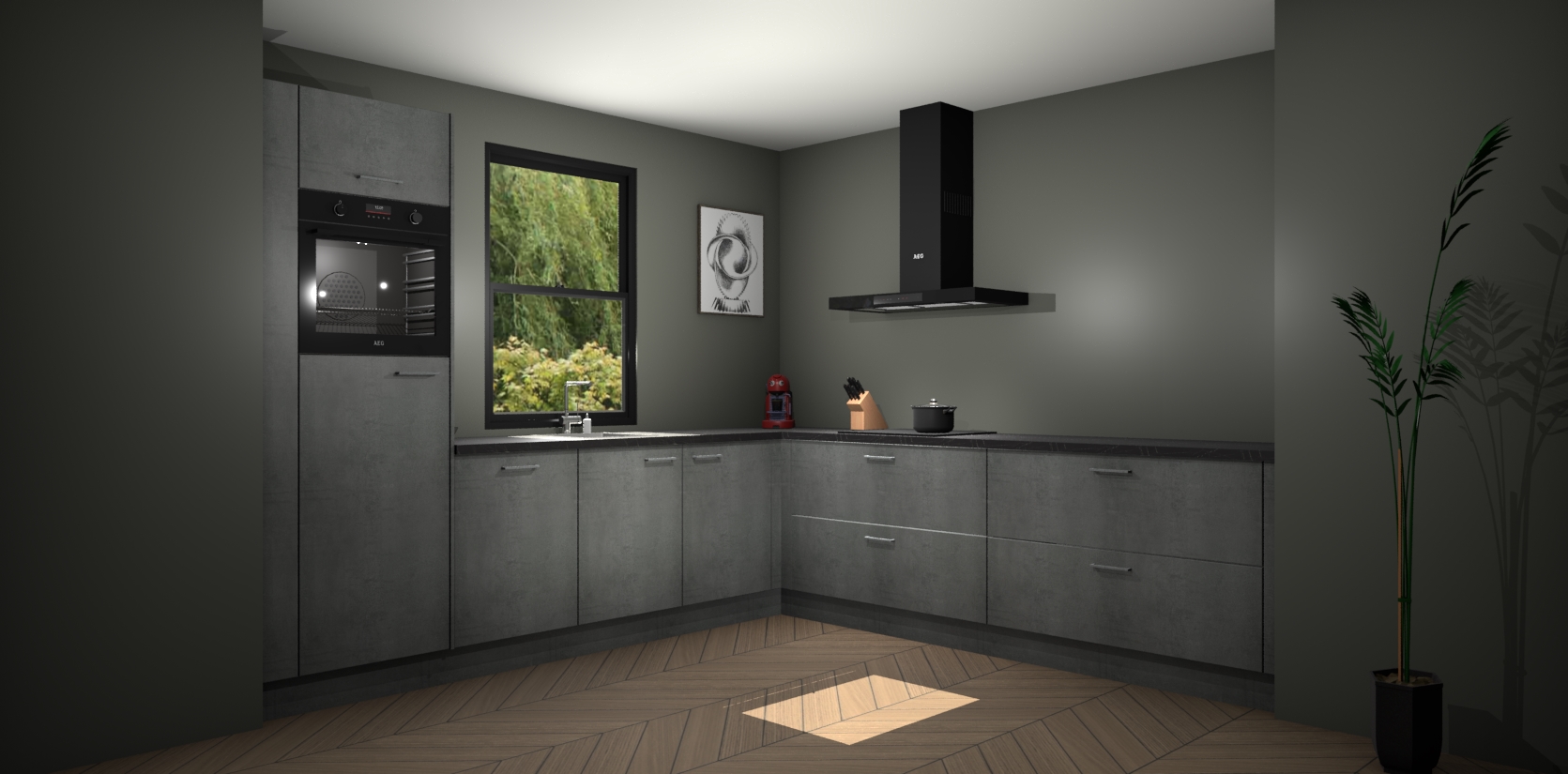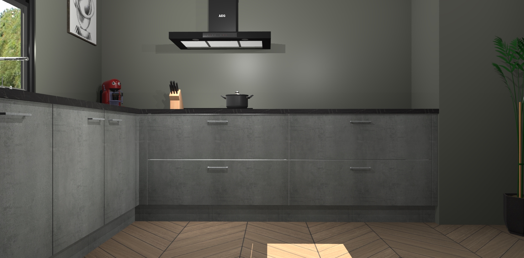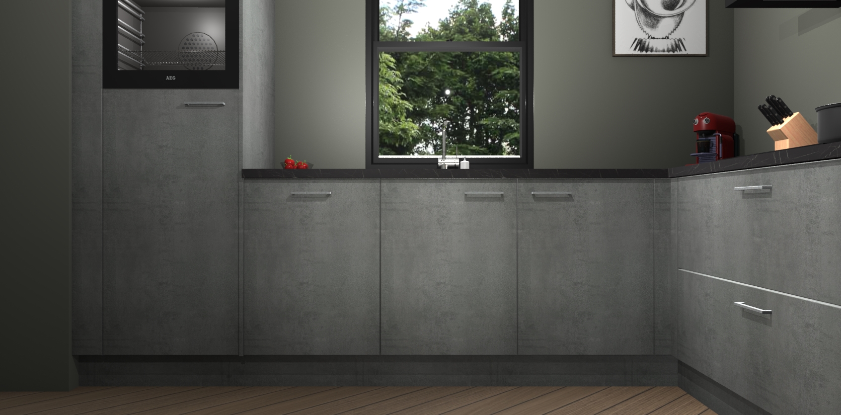 Welkom bij de Beton parelgrijs keuken Lublin. Deze prachtige keuken zal de komende jaren het middelpunt van de belangstelling in uw huis zijn. Uitgerust met vijf inbouwapparaten komt u nooit kookgereedschap tekort. Bovendien geeft de warme houtlook elke ruimte een uitnodigende en tijdloze uitstraling.
