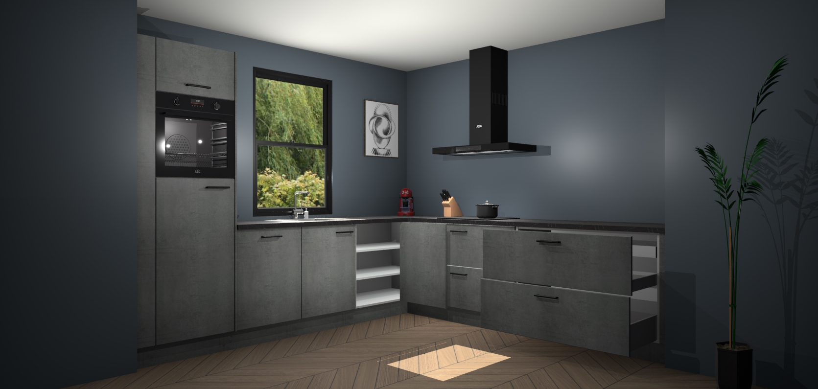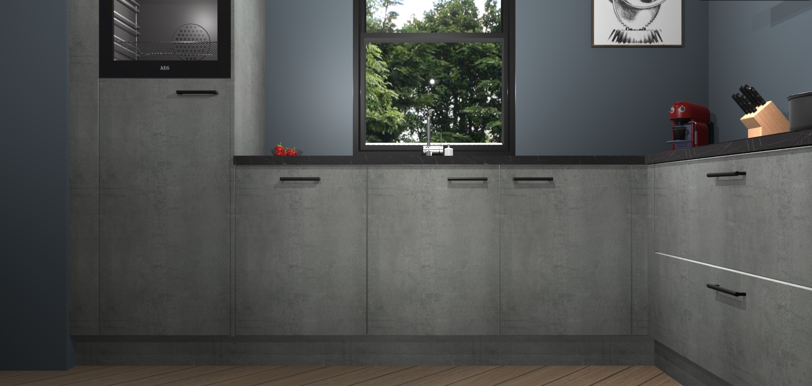 Welkom bij de Beton parelgrijs keuken Lublin. Deze prachtige keuken zal de komende jaren het middelpunt van de belangstelling in uw huis zijn. Uitgerust met vijf inbouwapparaten komt u nooit kookgereedschap tekort. Bovendien geeft de warme houtlook elke ruimte een uitnodigende en tijdloze uitstraling.